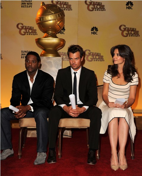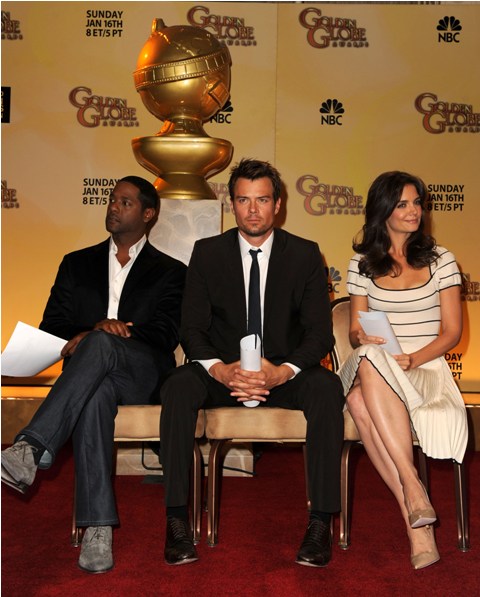 Katie Holmes, Josh Duhamel, and Blair Underwood read out the Golden Globe nominations this morning. Credit to them for not rolling their eyes at the dumbassness of some of the sh-t that got called out.
