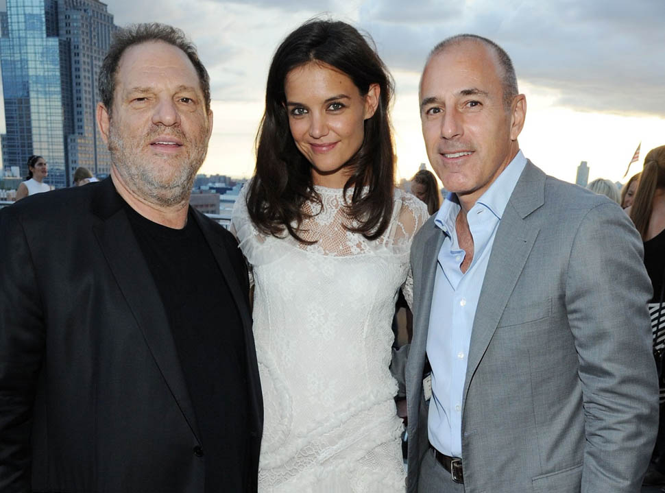 Katie Holmes attended a party in New York last night for the World Surf League. Random, right? Well… no. Harvey Weinstein was hosting. And he produced The Giver. Everybody has to be nice to Harvey. Now here’s a question: Harvey Weinstein or Scientology? Ha.