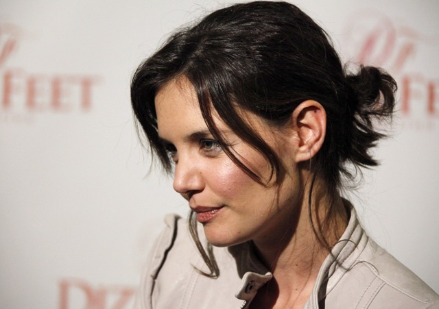Meanwhile Katie Holmes flew back to Hollywood this weekend to walk the carpet at the Dizzy Feet Foundation Inaugural Celebration of Dance yesterday with her hair in a messy knot and a gorgeous pale grey leather jacket. Sigh. Grey leather jackets. It’s my favourite purchase this season. Love it so much. Mine is slightly longer than hers, darker grey with a hood. Mike & Chris is great if you’re looking.