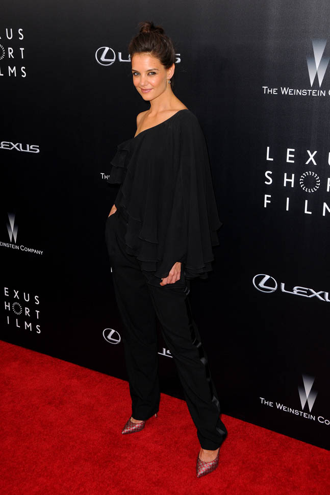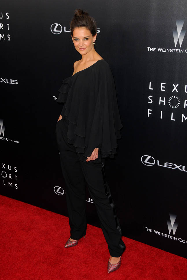 Katie Holmes: one shoulder for Weinstein