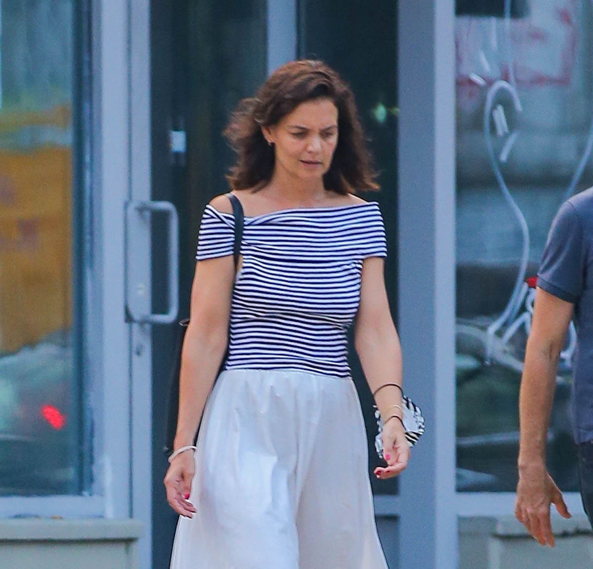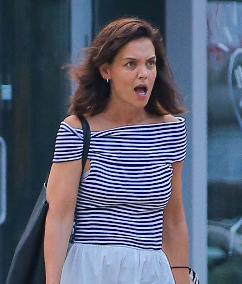 Katie Holmes: Striped and Off-the-Shoulder