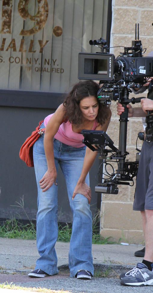 Katie Holmes in New York today on the set of her movie All We Had based on the novel of the same name by Annie Weatherwax (great name). Katie is also directing the film. You know what Sarah keeps saying about actors becoming directors? Yeah. Katie certainly isn’t getting the kind of acting work that she’s interested in. So she’s acquiring her own properties and giving herself the job. Which… I mean on the one hand, I’m into. On the other hand… um… deep breaths here… I can’t remember if Katie Holmes is good at her job. The closest comparison I could come up with here is Taylor Kitsch. You’ve seen his acting in Friday Night Lights. But you’ve also seen his acting in True Detective 2. If I told you Taylor Kitsch was directing a movie, what would you say?