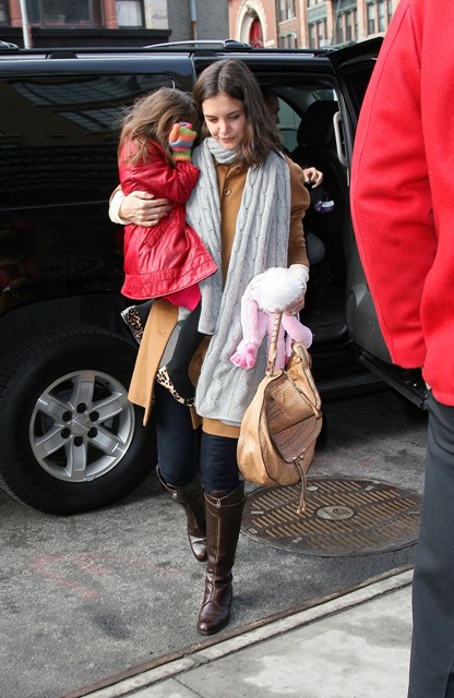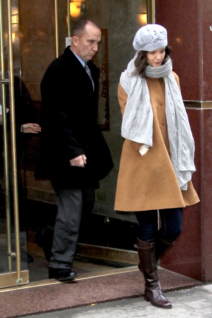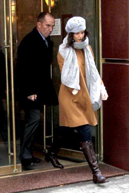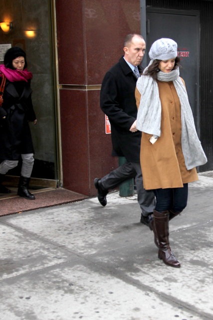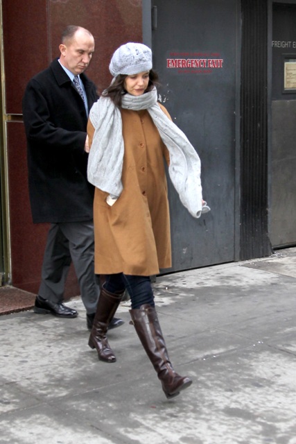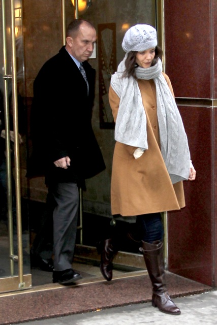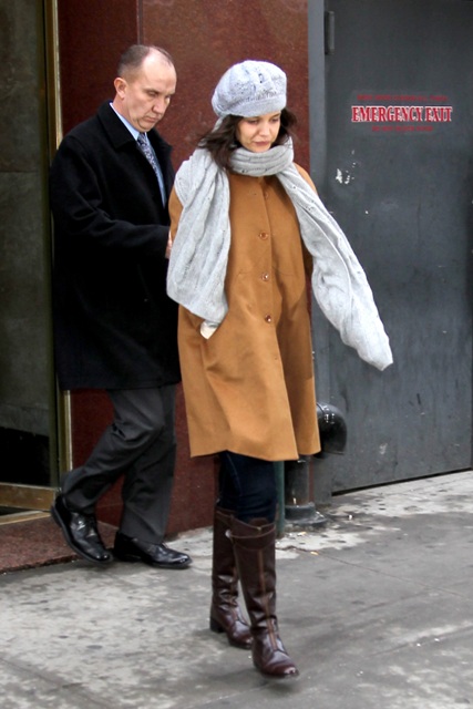 Katie Holmes is in New York. They say she’s there to scout for meeting for her label Holmes & Yang and to scout for material for the new line. Just did a quick google, this was the closest I came to actually looking at the items – click here from the launch at Maxfield. Having said that, you’ve seen the sh-t she’s worn, her own “creations”, and the unanimous verdict was BUSTED.