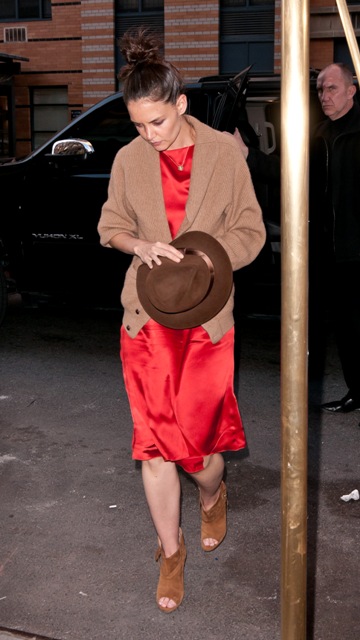 And she’s a “designer” too. Look at this mess. The sateen, the suede fringed sandals, the hat, the cardigan –I don’t understand how all these things end up together.