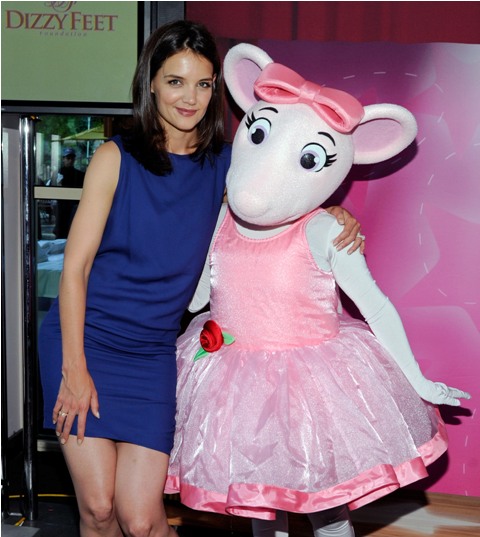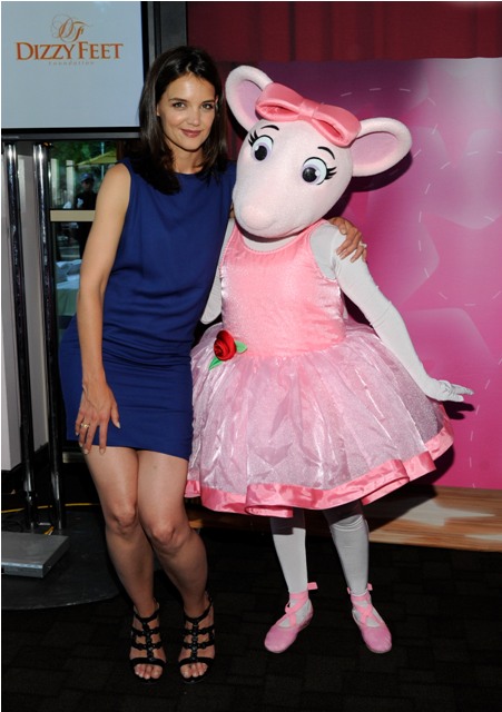 Katie Holmes was in Las Vegas yesterday to announce a partnership between her Dizzy Feet Foundation and Hit Entertainment’s Angelina Ballerina in support of programs that engage disadvantaged youth in dance and dance education. Because, you know, she’s totally like a proper professional dancer now. She has even inspired her husband to start dancing, and you saw his moves at the MTV Movie Awards on Sunday. Tom said afterwards that: