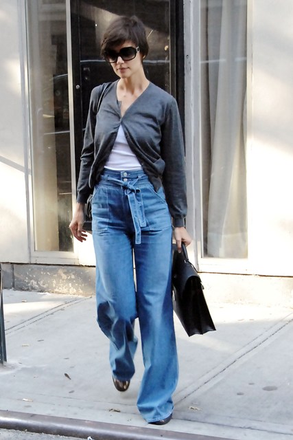 Katie tired of the cuff roll on Saturday so she decided to pull out a pair of high waist wide legs. Let’s measure our reactions here, shall we?