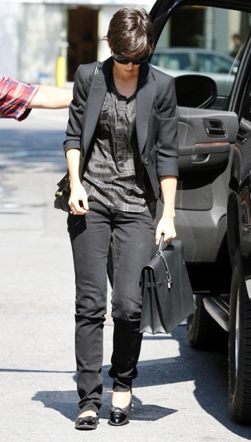 In comparison then KatE’s oddlooking iteration isn’t all that offensive. Still…it ain’t good. It ain’t anywhere near flattering, which in a small petty way, and I’ll say it for you, is actually kinda comforting that even a tall, skinny bitch like Katie Holmes can’t make this sh*t work. She looks like she’s walking on stilts underneath, non?
