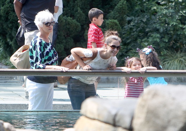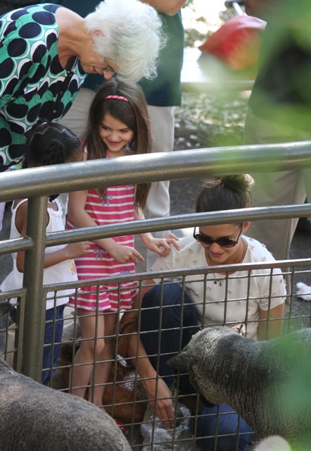 Katie and Suri hit up the zoo yesterday with grandma. As you can see, and she wants you to see, Katie is tactile and attentive. How can the paps be of assistance? Since Suri was born, it’s been Suri and Katie all the time. Over time that begins to leave a mark. In the public’s mind, Suri’s primary parent has always been Katie Holmes, thanks to the paparazzi. It’s ironic how some things work in your favour, non? Tom Cruise moves around so mysteriously, so undercover, his sightings with his family, and particularly his youngest child are so seemingly rehearsed not to mention infrequent, it’s like he lost custody even before he had a chance to fight for it.