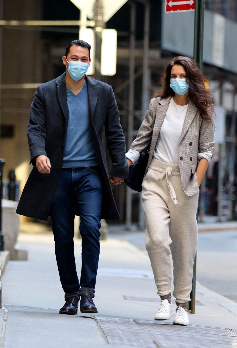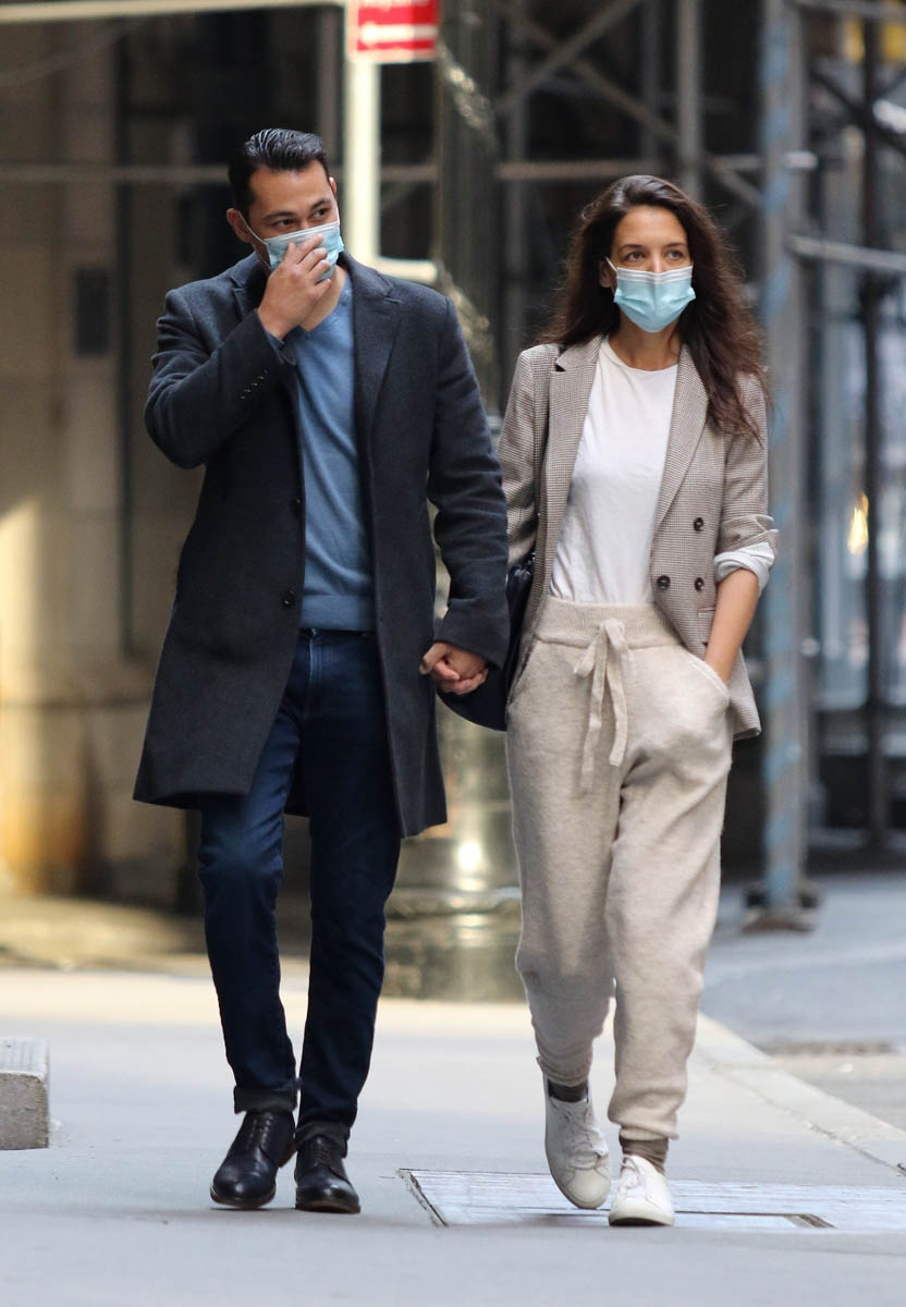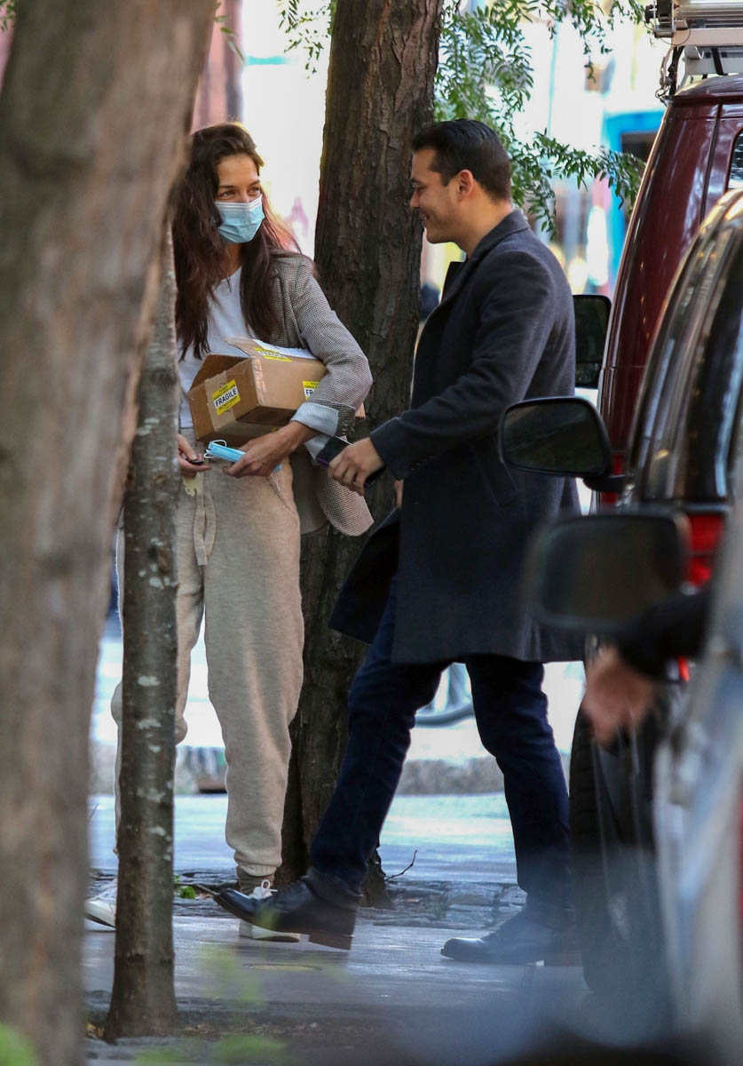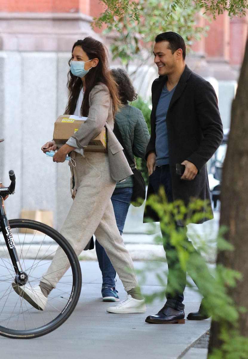 Katie Holmes’s love life is straddling two seasons. She and Emilio Vitolo Jr started in August but their love story is still in its first heady chapter as they continue to be photographed all over New York all over each other. The other day they were kissing outside his restaurant – and it looked like the kind of lingering, I don’t want to leave but I know I have to leave but I don’t want to leave, kissing that so often happens during the first stage of relationship intoxication. The pull is so strong that even a celebrity like Katie, who would know that paps would be hanging out around the restaurant, doesn’t seem to give a sh-t who sees.