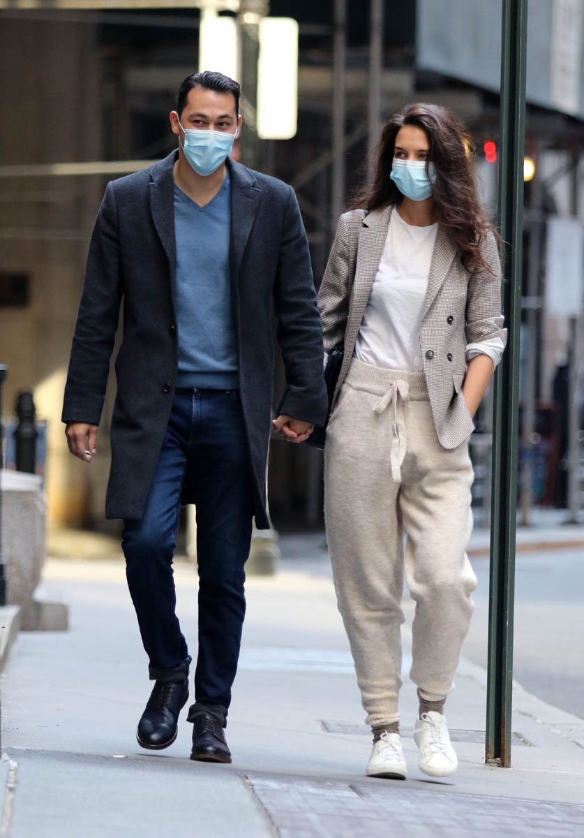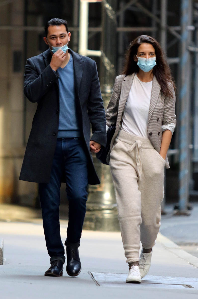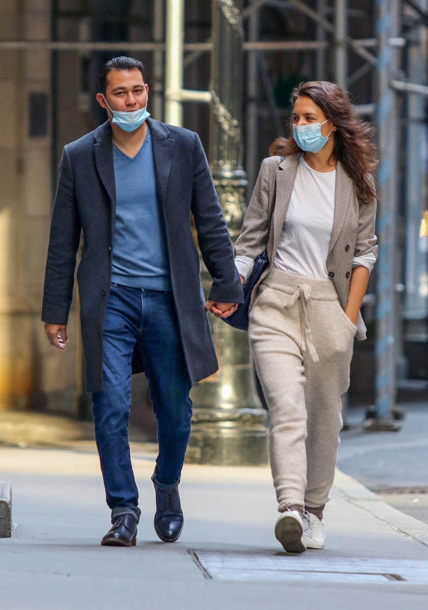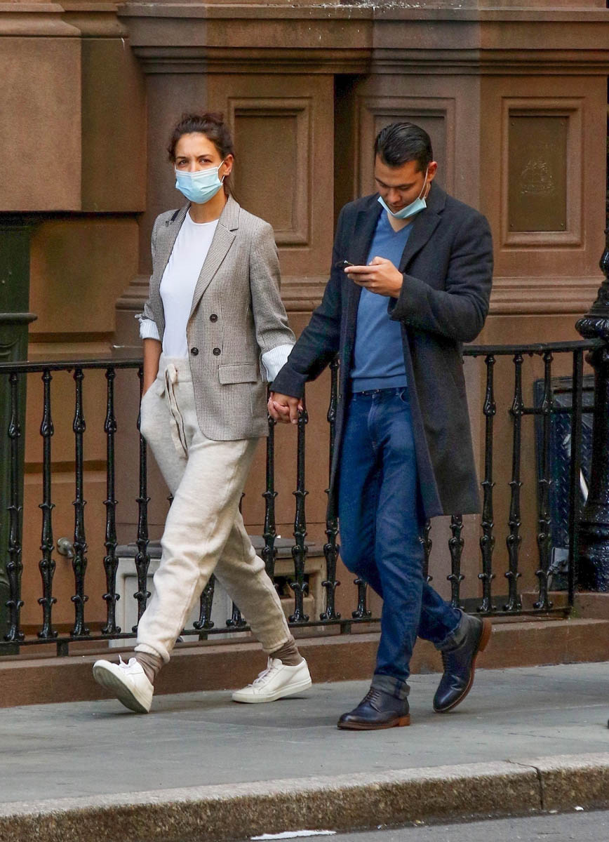 Katie Holmes’s love life is straddling two seasons. She and Emilio Vitolo Jr started in August but their love story is still in its first heady chapter as they continue to be photographed all over New York all over each other. The other day they were kissing outside his restaurant – and it looked like the kind of lingering, I don’t want to leave but I know I have to leave but I don’t want to leave, kissing that so often happens during the first stage of relationship intoxication. The pull is so strong that even a celebrity like Katie, who would know that paps would be hanging out around the restaurant, doesn’t seem to give a sh-t who sees.