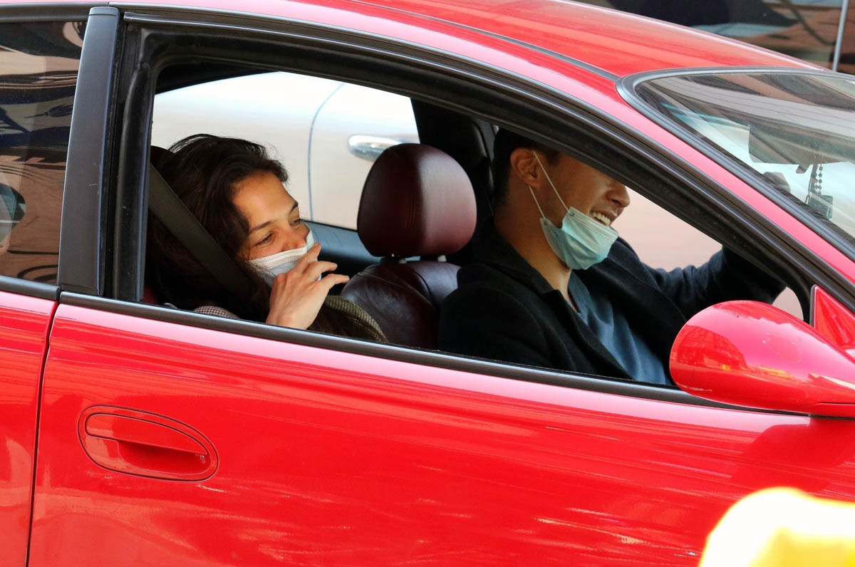 Katie and Emilio have been making headlines for a couple of weeks now. And, well, they don’t appear to be hiding. Yesterday they were photographed again walking hand in hand down the street after what the paps called a “joyride in his red Pontiac”. A red Pontiac! Now that is a choice!