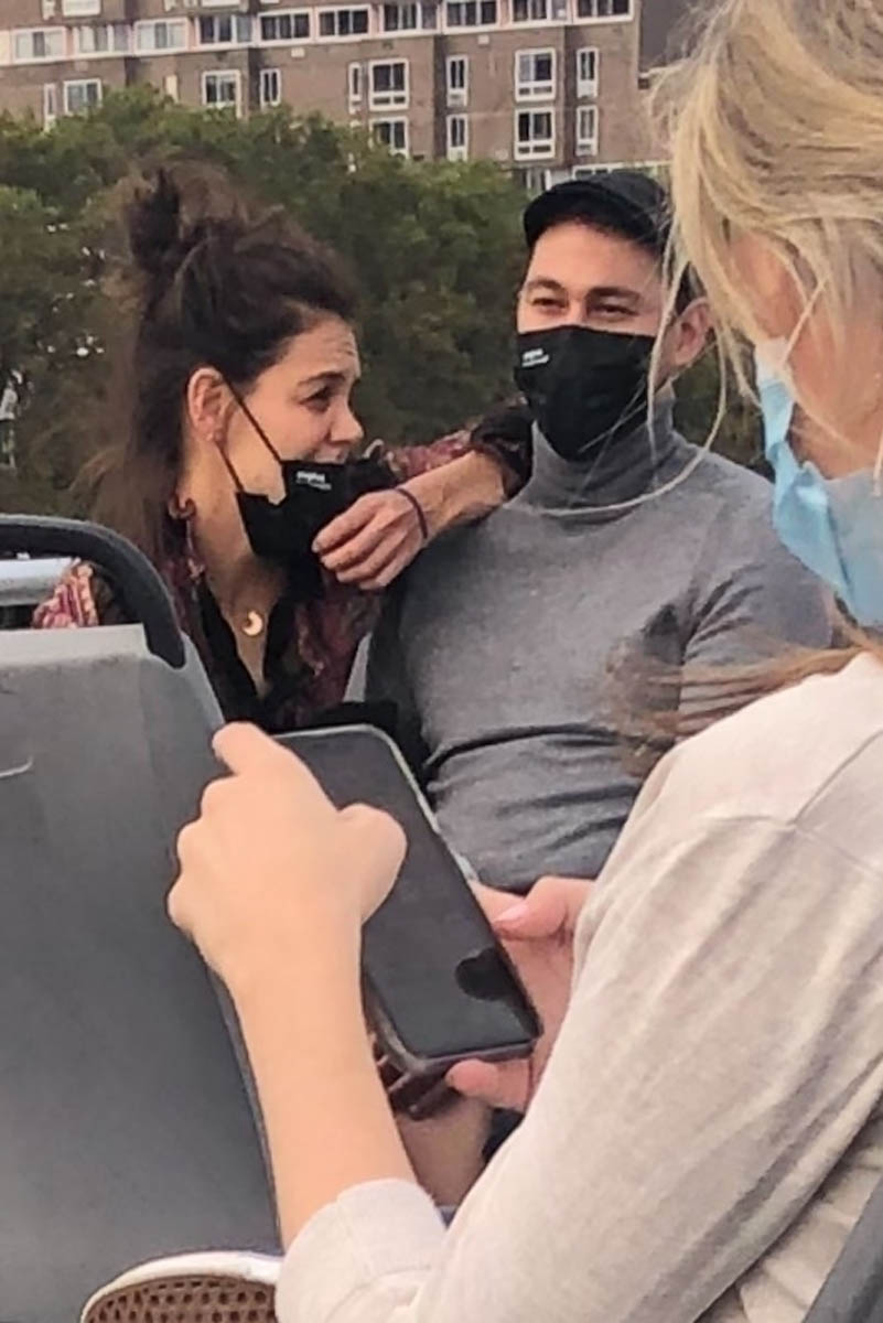 Anyway, doesn’t seem like Katie’s bothered about the overlap and whether or not her new boyfriend may be an unfaithful starf-cker because since then there have been more sightings of the two, unmistakably feeling each other all over New York. Here they are on a ferry ride before going for a romantic walk along the river. The other day they were seen running errands together. And she’s been spending time at his apartment.