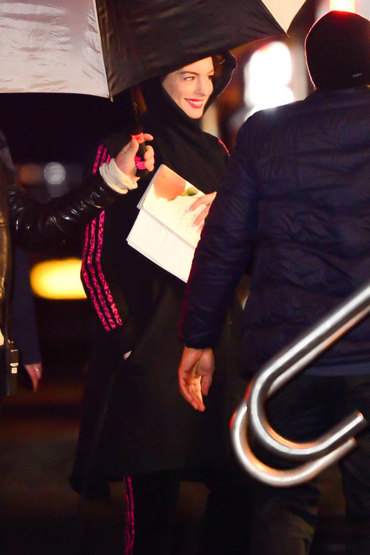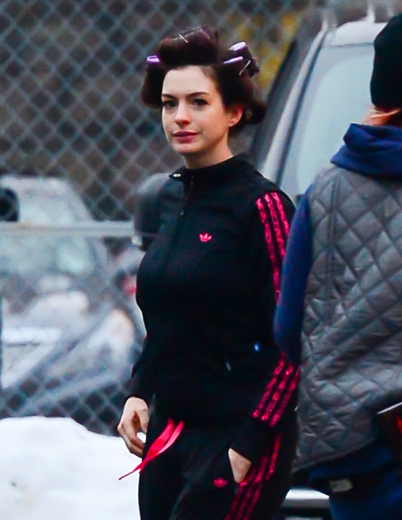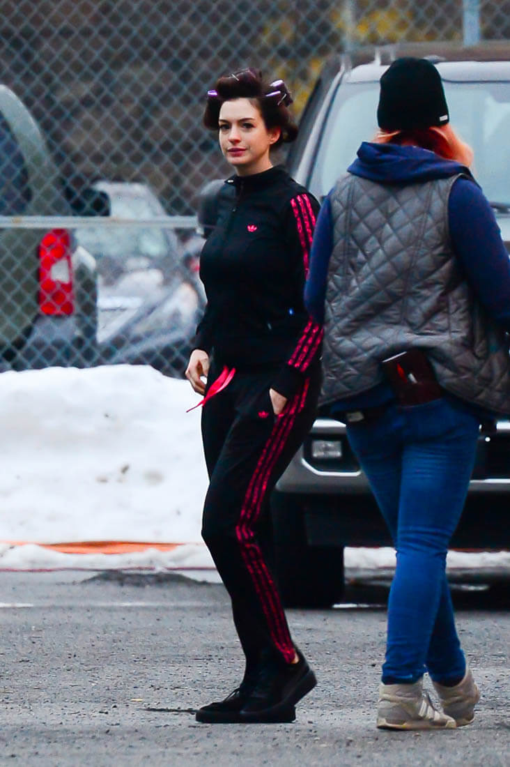 Also attached – Anne Hathaway on set in a track suit. And the connection here is…?