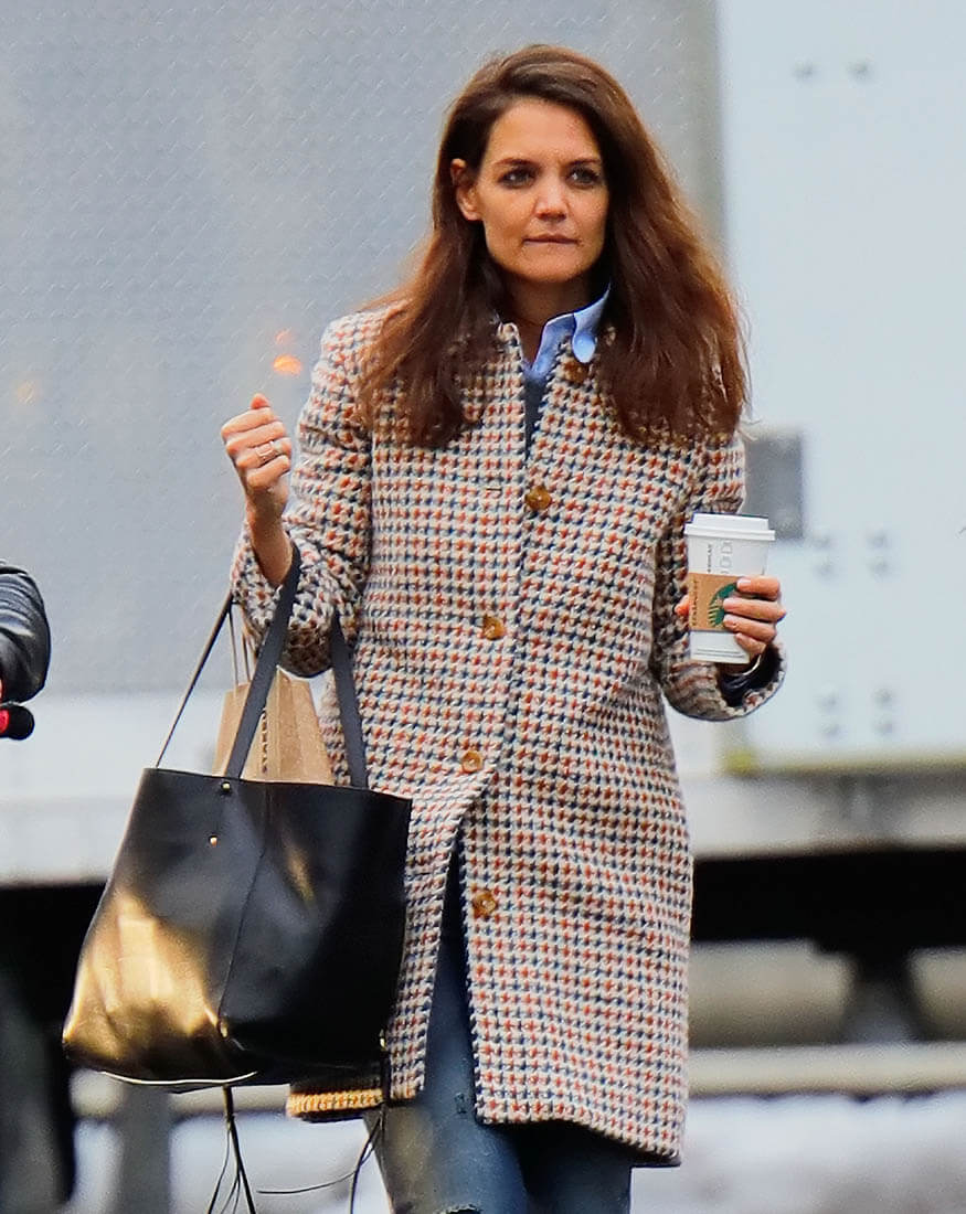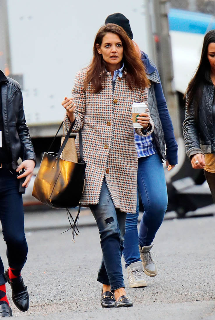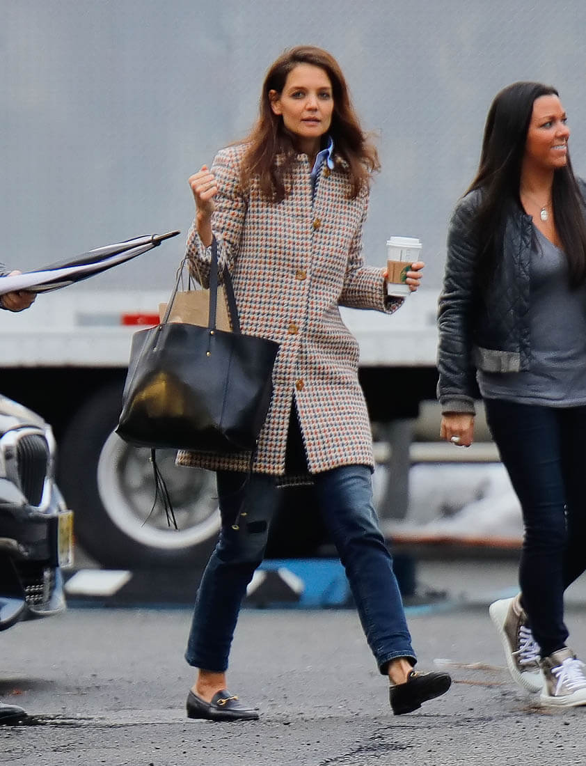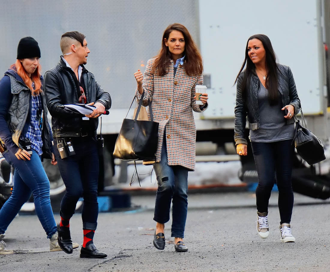 Maybe it’s supposed to be a surprise cameo? An uncredited appearance? Well, here she is on set in New York yesterday. Zac Posen was there too. Katie and Zac have been pretty close over the last couple of years. She’s been wearing him almost exclusively on red carpets. She wore Zac Posen to the MET Gala last year. And the plot of Ocean's Eight has something to do with the MET Gala. So perhaps that’s how all of this is tying together.