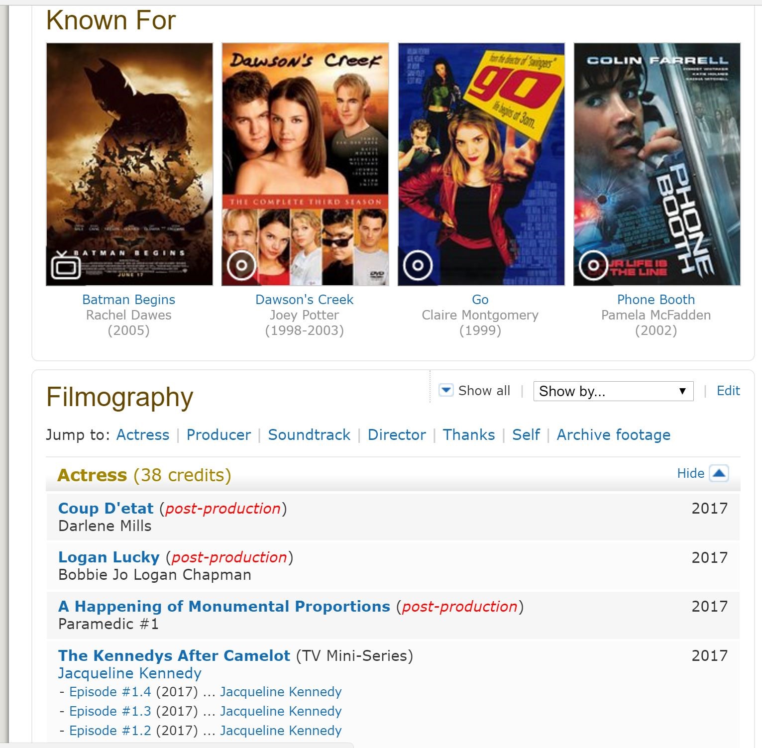 Did you know this? I don’t remember knowing this. Like, at post time, which is about 4pm ET on January 12th, 2017, it’s not even on her IMDb page. Here’s a screenshot I just took: