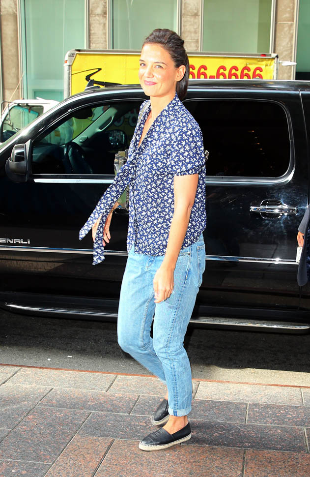 I mean she’s done some press for makeup here and there, but The Giver is her first major acting project since the divorce. She made the rounds today in New York, first on The Today Show and also on Sirius Radio. Soundbites? Come on, now. It’s Katie Holmes. We max out at 4 on an excitement level when it comes to Katie Holmes, and oftentimes it really has nothing directly to do with her.