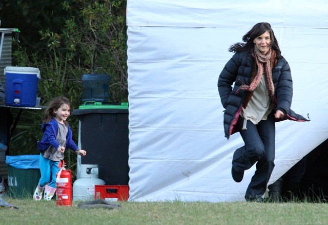 Anyway, almost a week after her dancing sh-ts aired on television Katie continues to shoot in Australia with Little Sci on set, enjoying some downtime between scenes, and we’re going on 3 weeks now that she and Tom have been apart while he spends time with Isabella and Connor and plots his return in LA.
