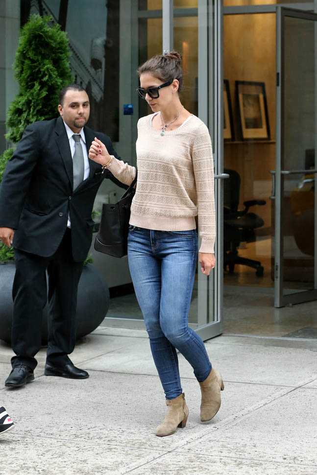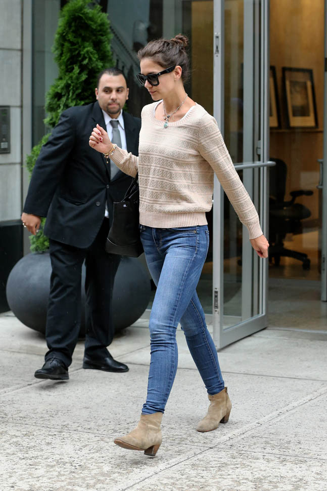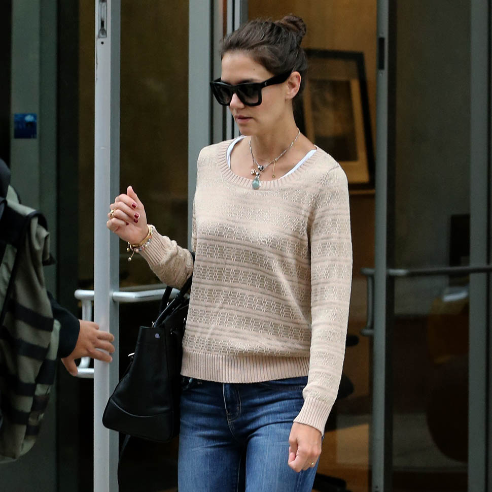 Check out Katie Holmes in New York today. Word is she and Suri are spending the summer in the city. Rumour is she’s renting an apartment for $25K a month. That’s a lot of money for civilians like us. Not a concern for celebrities and besides, Tom Cruise is probably paying for it. There’s been all kinds of speculation about how Tom hasn’t seen Suri for a long, long time. Here’s a maybe c-nty question: given his Xenu affiliations, if you’re Katie, as long as the child support payments keep coming… do you really need Suri to be visiting the Celebrity Centre?