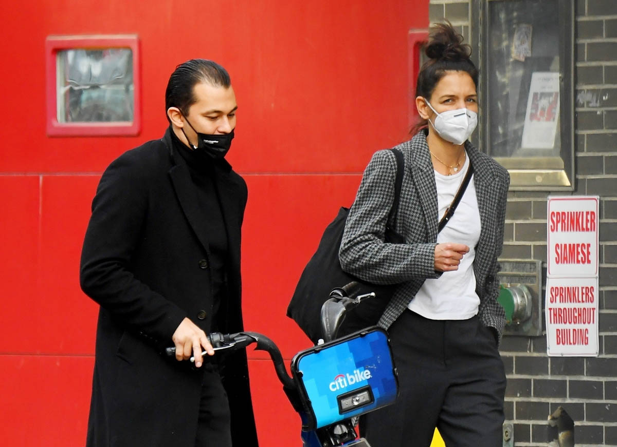 Katie Holmes and Emilio Vitolo Jr were seen in New York City yesterday, as they do, and after weeks of constant togetherness, going from oh he’s engaged to oh he’s no longer engaged, he’s making out with Katie on the sidewalk, and questions about how quickly their relationship has progressed, we’re now hearing from “sources” with clarification on their situation.