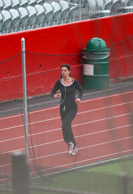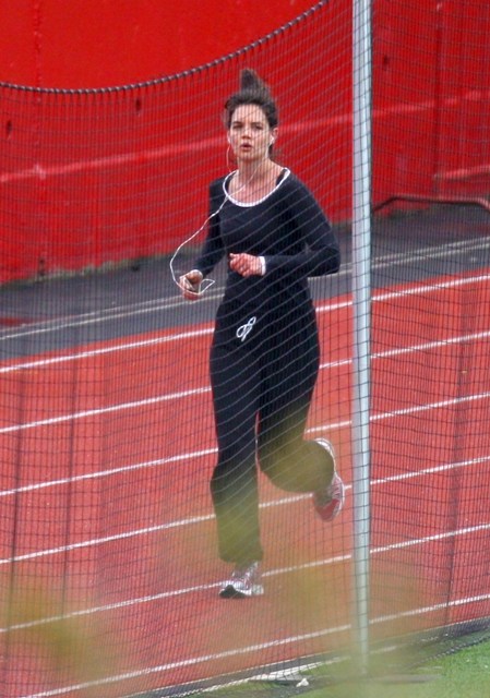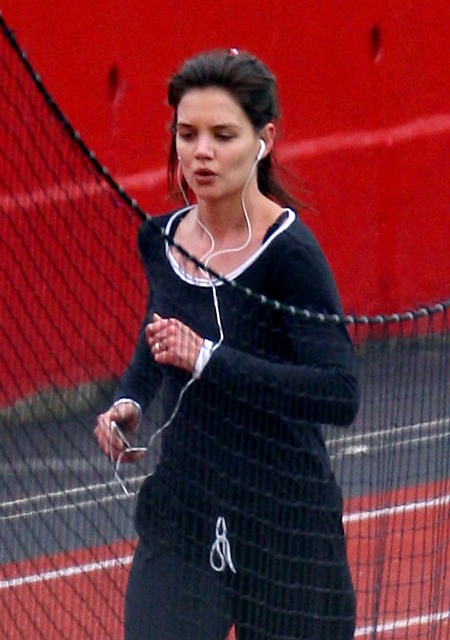 Here’s Katie Holmes at Boston University today training for something. The New York Marathon is on November 1st. Perhaps?