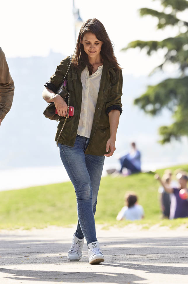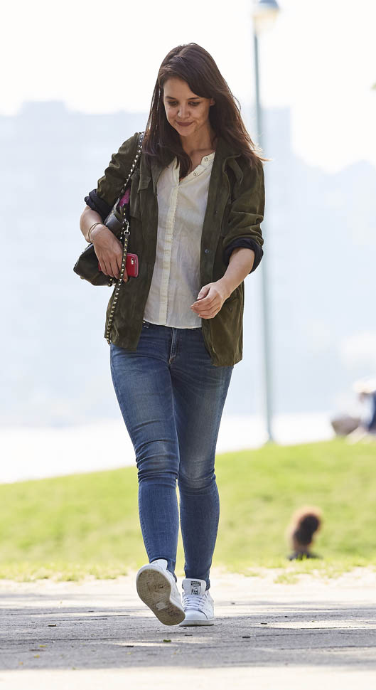 Just Jared posted some shots yesterday of Katie Holmes at the drug store studying a bottle of moisturiser. I decided not to buy them because the agency representing the photos is pretty expensive. It’s, ahem, the same agency that keeps getting shots of Blake Lively in out of the way places like, oh, in a small town in Utah at a bed and breakfast and pictures of her kissing Ryan Reynolds with the wedding ring on display after the wedding. Click here for a refresher.