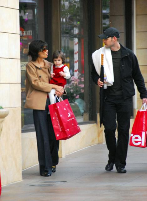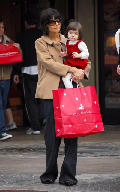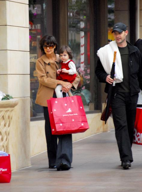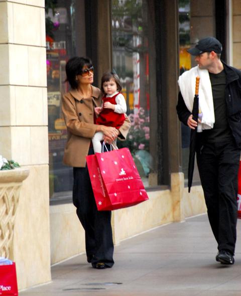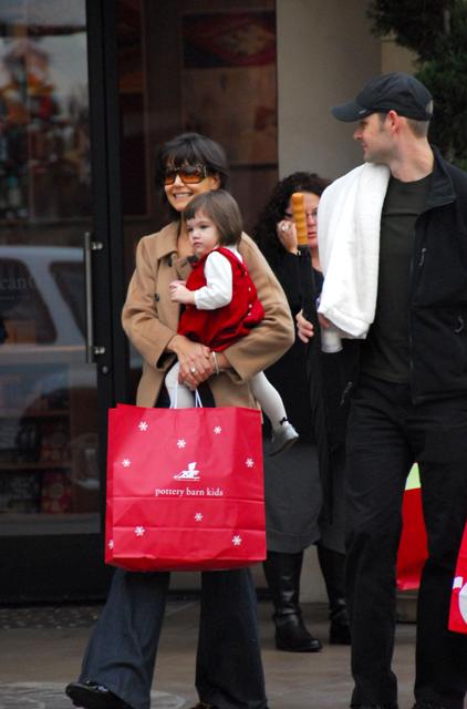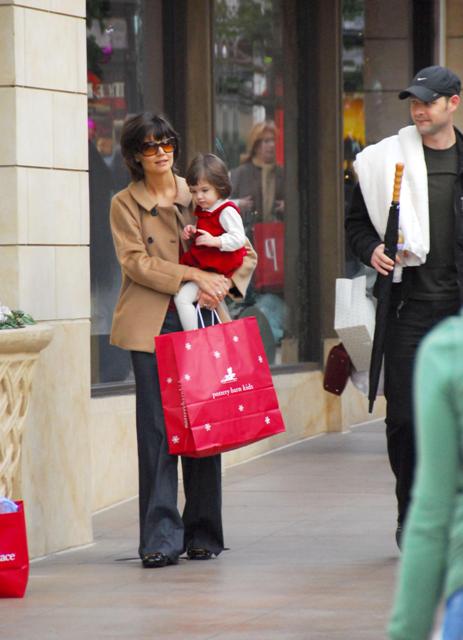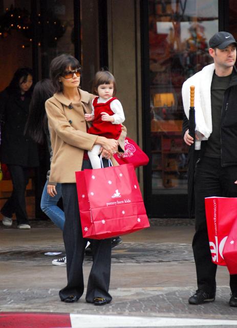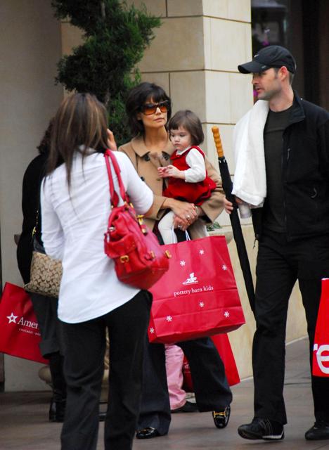 Here are mom and Little Sci shopping at The Grove the other day. Because shopping at a crowded outdoor mall is the perfect way to spend a Friday afternoon with your baby. Which is why Katie had Little Sci dressed up in her holiday red and whites. And as usual, Little Sci is the cutest, always ready for her photo op.