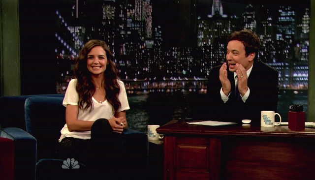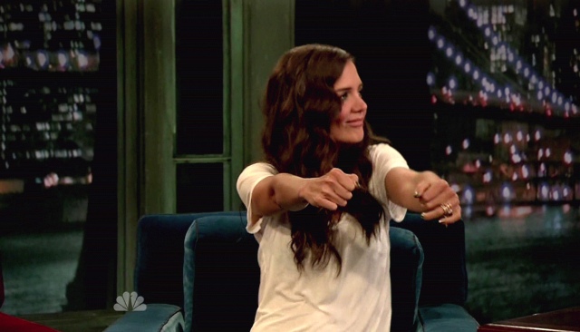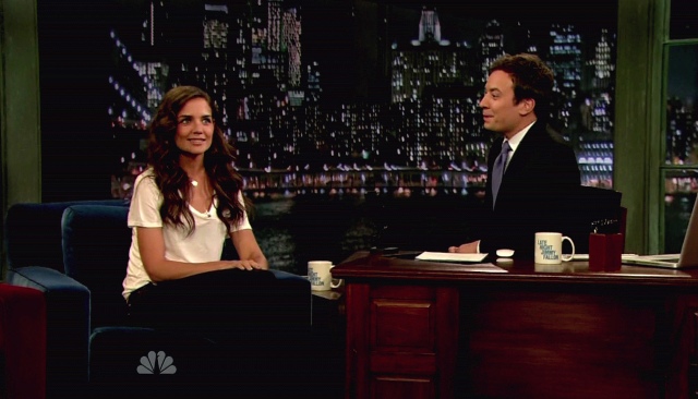 Anyway, Katie was on Jimmy Fallon this week. Boring the sh-t out of you. The interview was excruciating. During the game, she was definitely more animated but again... it’s like Tom Cruise’s uncool lameness is contagious. Even the way she turns a phrase, it’s so oddly lame. She speaks like a retiree, it’s the strangest thing ever.