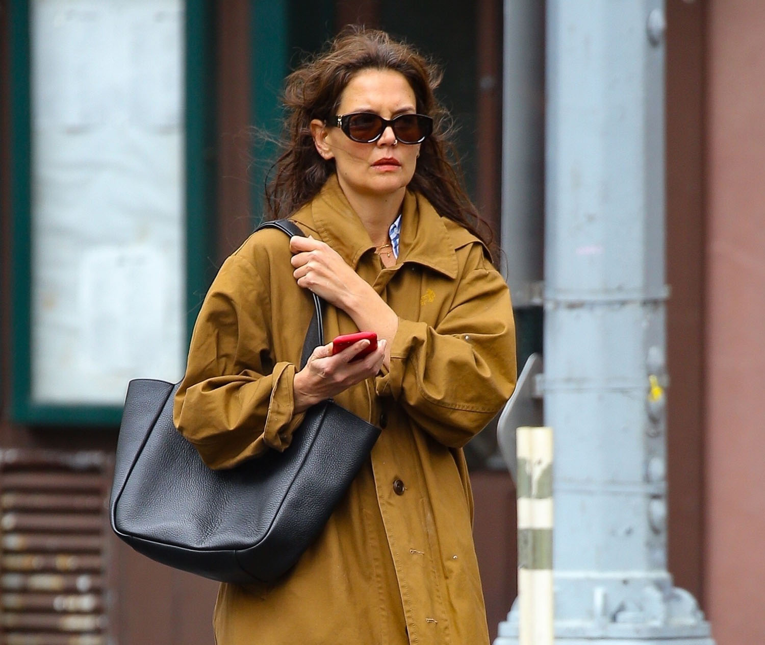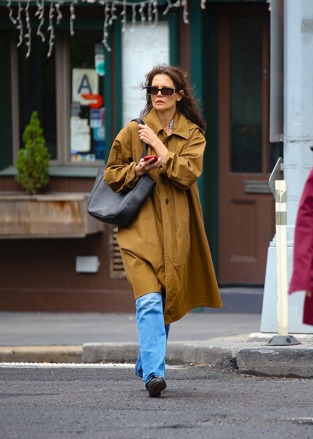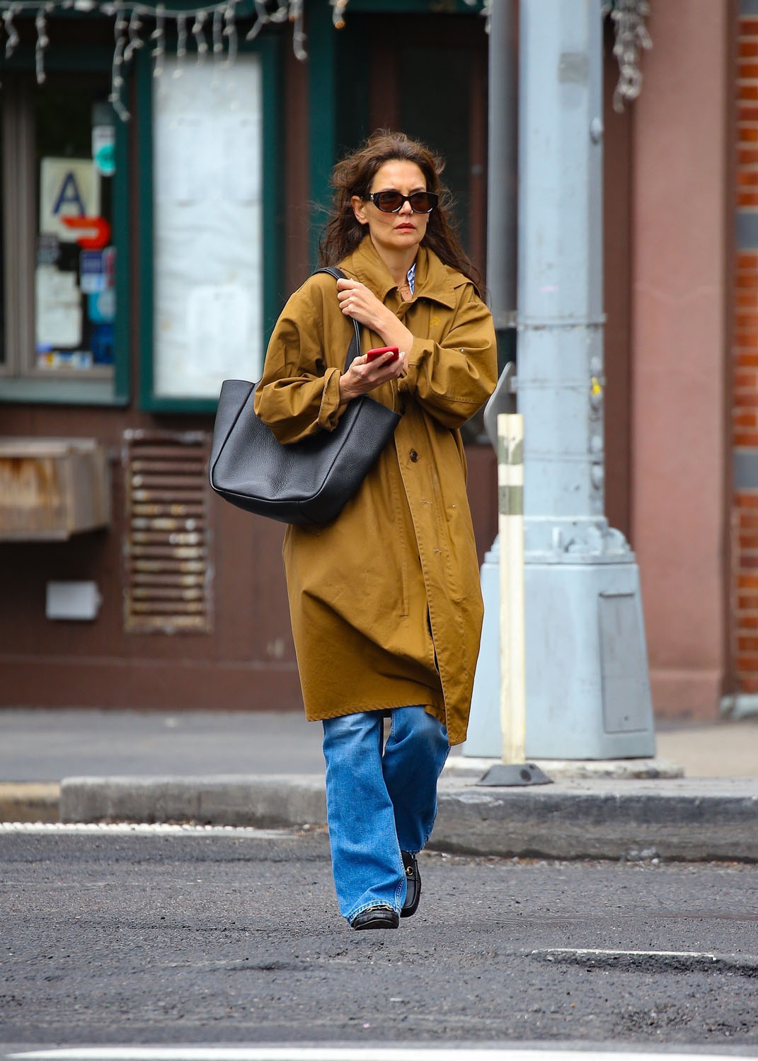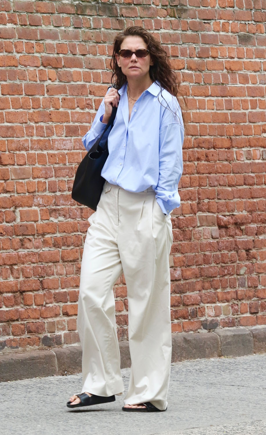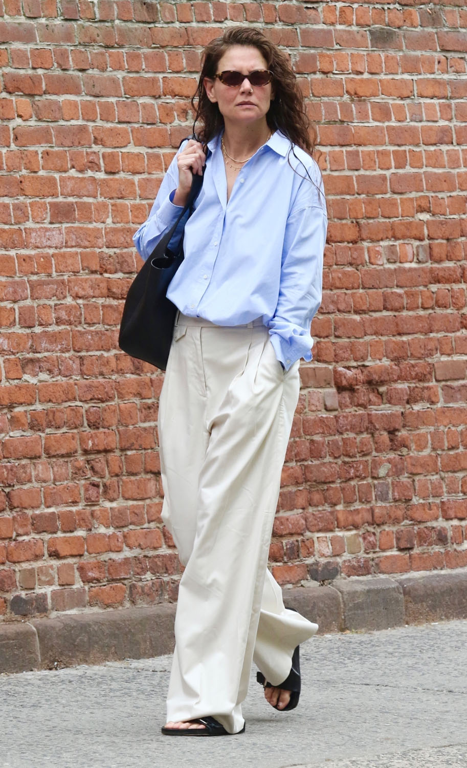 Today is Suri Cruise’s 18th birthday so I’m posting these pictures of her mother, Katie Holmes, in New York yesterday in a really great shirt over an equally great pair of trousers, plus brand new shots of her from today.