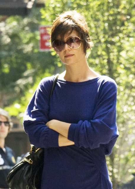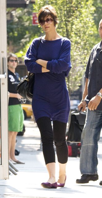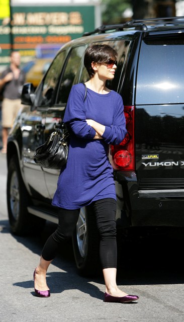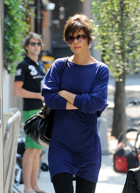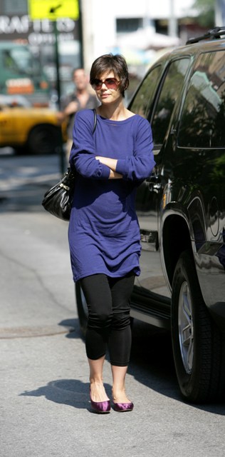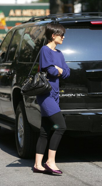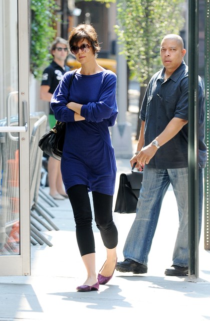 Katie Holmes, that lazy ass, was apparently too tired to make us care about her outfit today. Just a long shirt and leggings.
