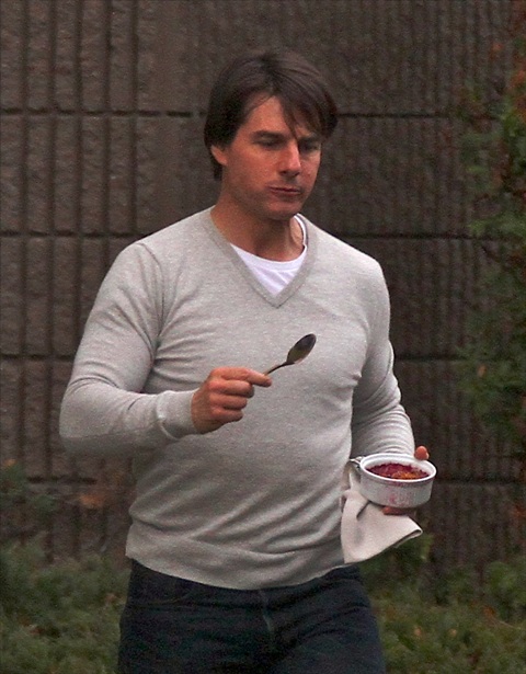 This is Katie with Little Sci shopping for Halloween in Boston and also at the pumpkin patch this weekend with Tom Cruise. Tom was also spotted on set after stopping for dessert at craft services the other day. I’m just saying maybe he should give up the tight sweaters.