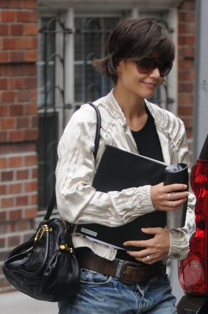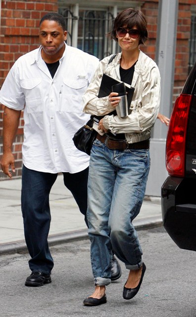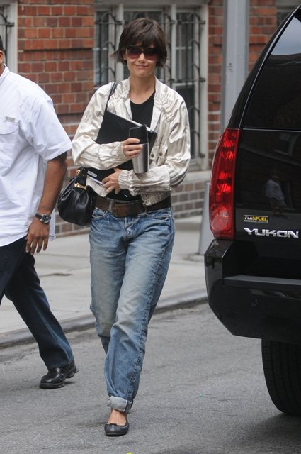Because the jeans are back. The jeans are here to stay. The Robobride androgynous jeans are now an intrinsic part of KatE Holmes. Just like her ass awful hair. And her geriatric style. The androgynous jeans are meant to make him forget that she’s a woman who longs for man. The same way her husband tries to forget that he is a man who longs for man.