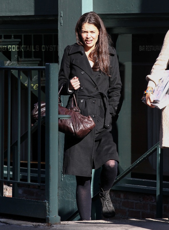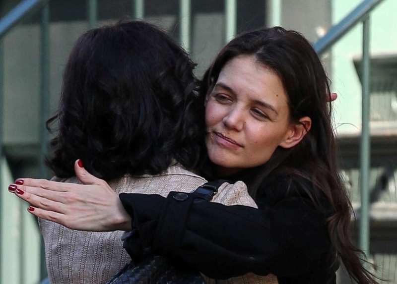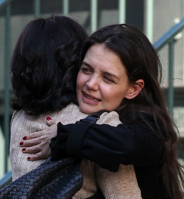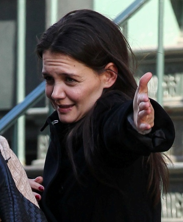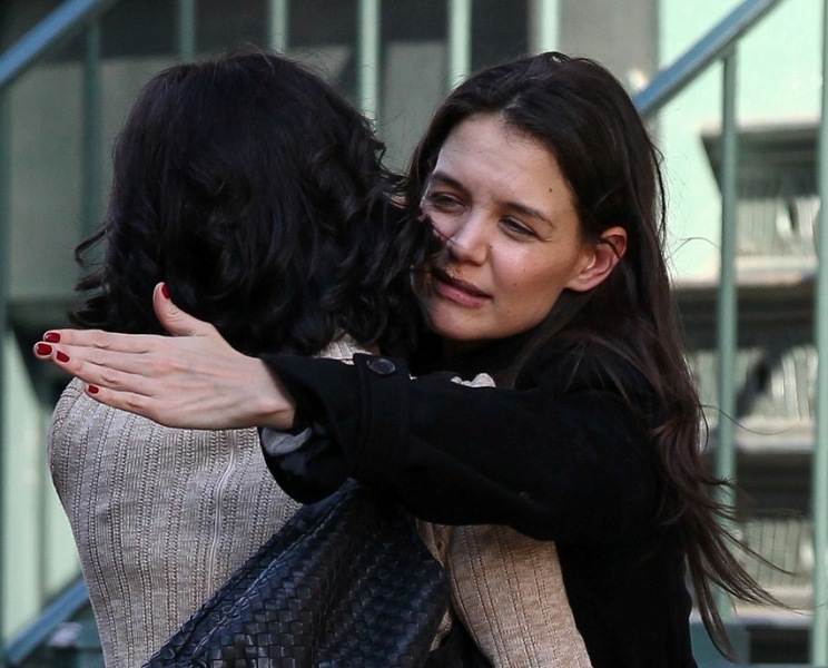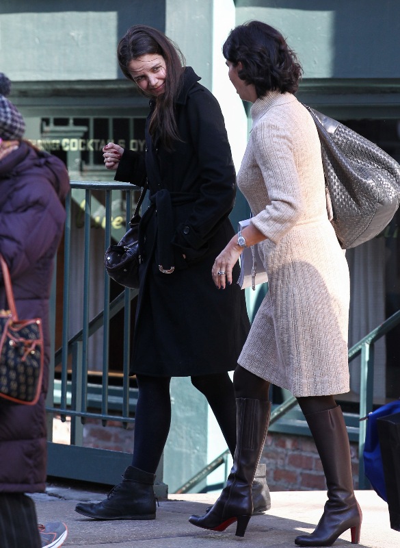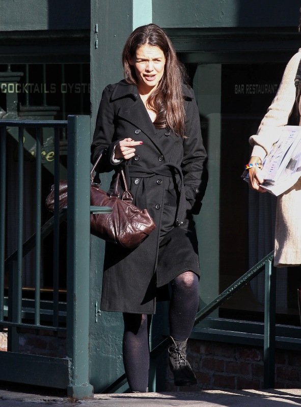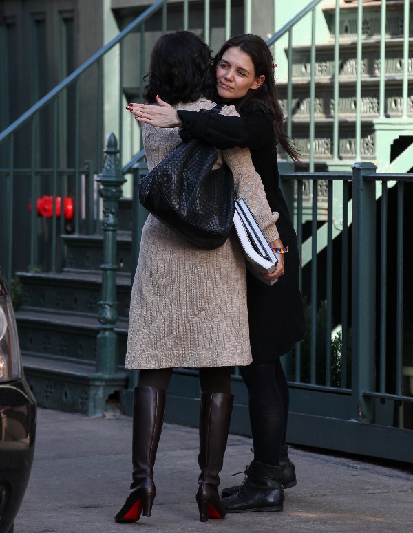 Here’s Katie out with a friend after lunch the other day. If Katie is Carrie, would this be her Miranda? I could get behind it, you know? Introduce me to her friends. Where do they go for martinis? Which one adopted an Asian child who doesn’t get to speak in the movies?
