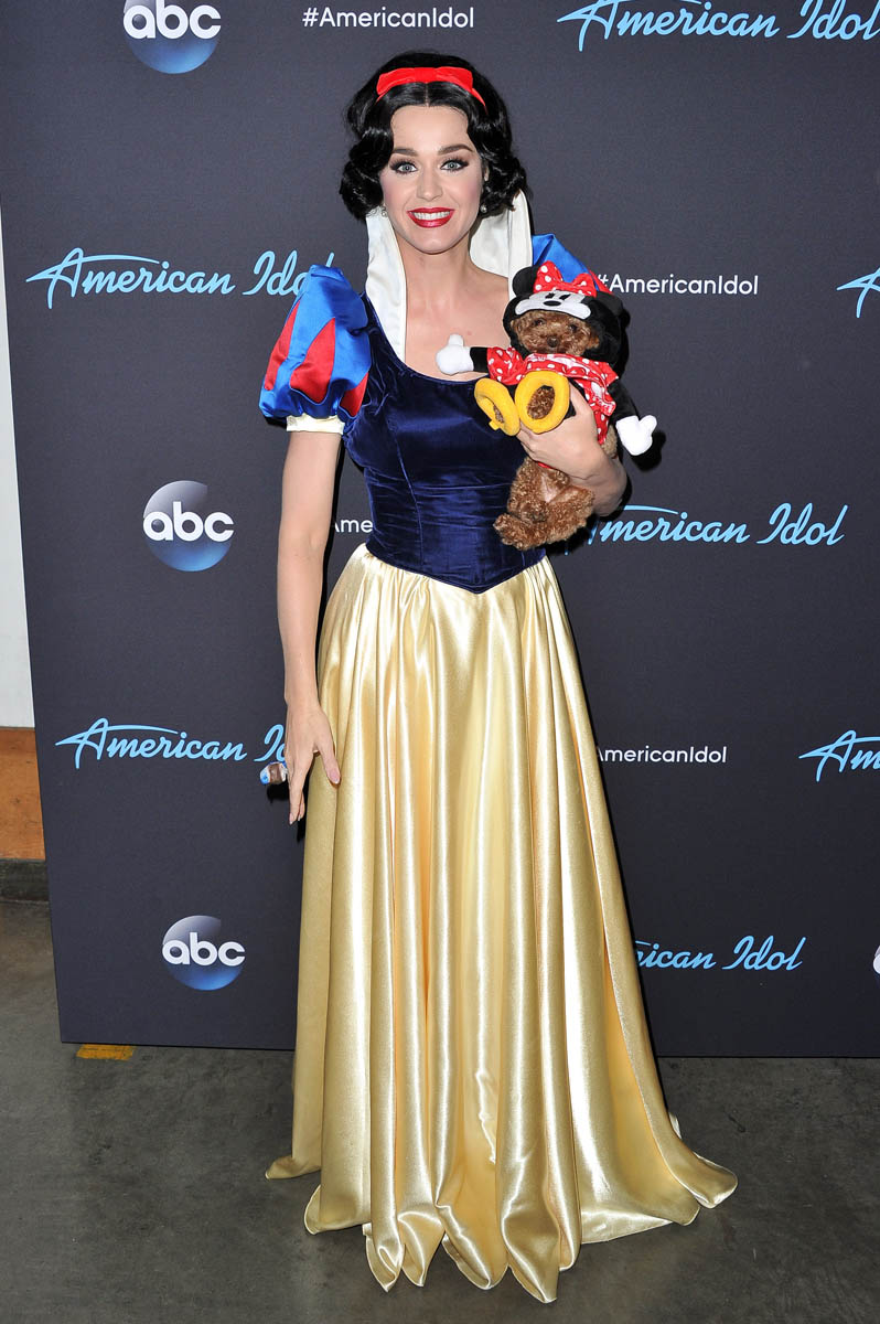 In other Katy news, after getting home from Rome, she went straight into work on American Idol last night. Apparently it was Disney themed? And she went as Snow White. She’s a pretty good Snow White actually, non? Like a picture-perfect Snow White.