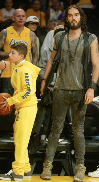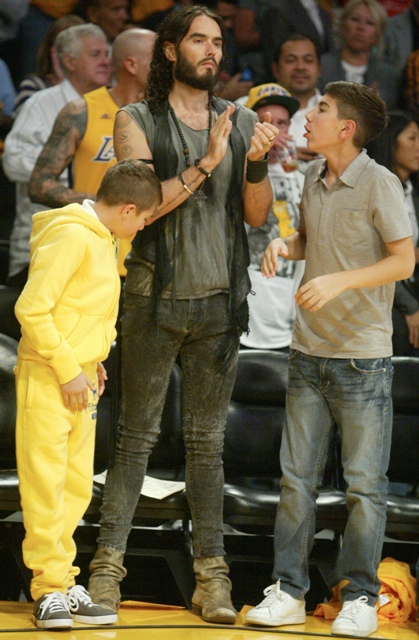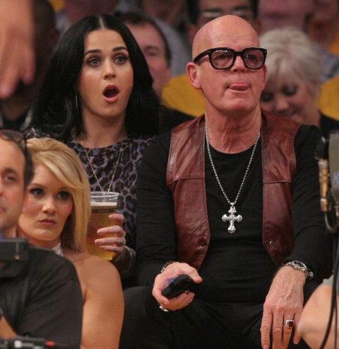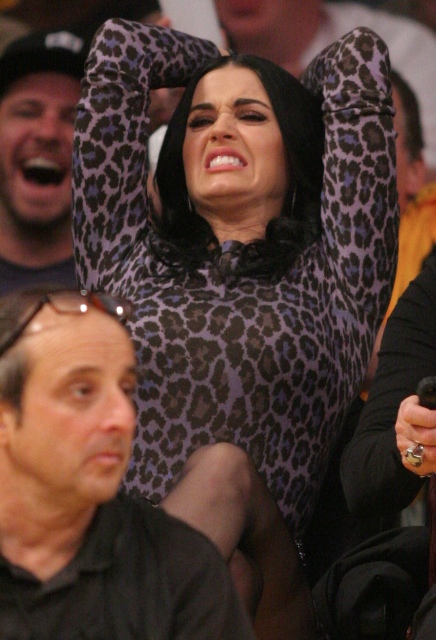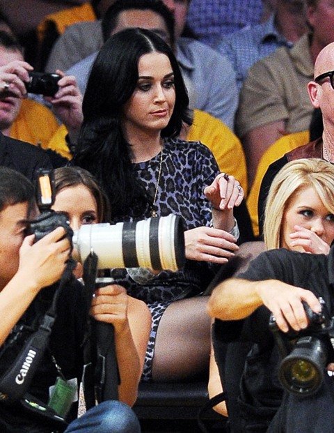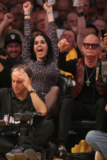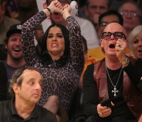 Katy Perry and Russell Brand watched the much-hyped new Lakers lose their home opener last night. (If I had the time I would manage a Charles Barkley appreciation Tumblr because... he’s a treasure, he really is.)