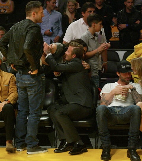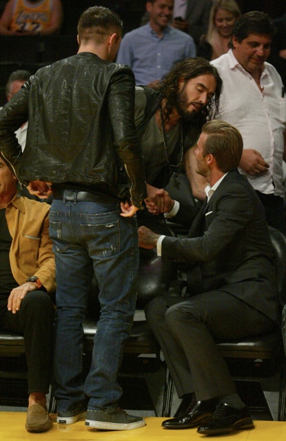 Anyway, Russell was there with two young companions and it seemed like (at least to me) it was a Big Brother or a volunteer situation, which, obviously, is super sweet. At one point he went up to greet David Beckham and the kids had their pictures taken with him.