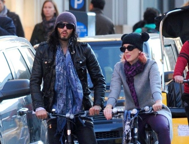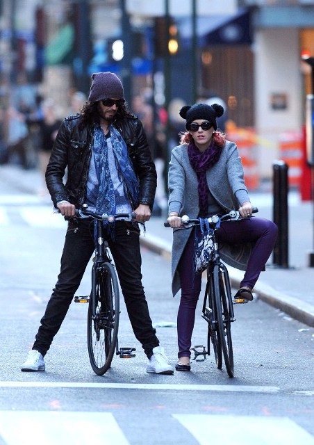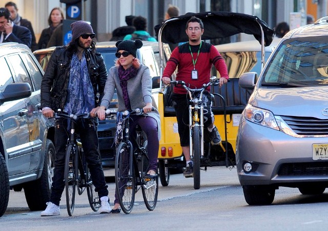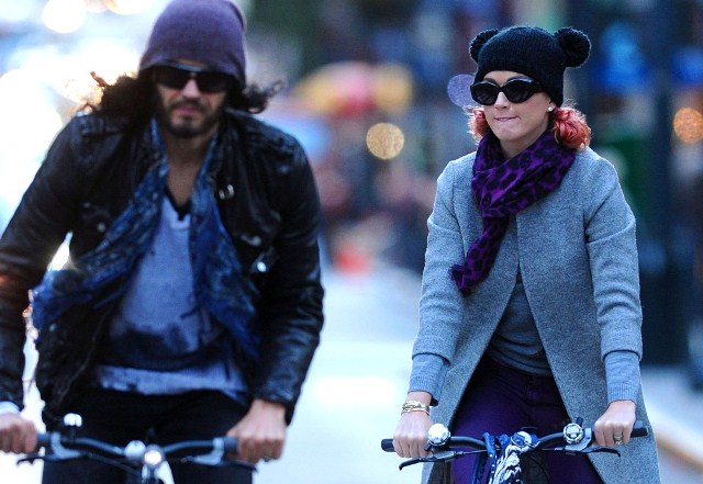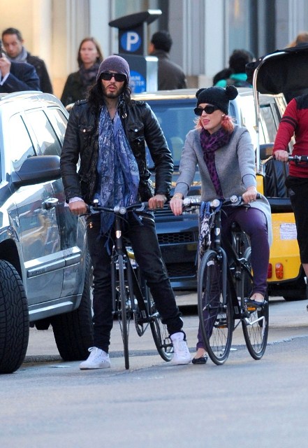 A year ago they were in India getting married and petting tigers. To celebrate their one year wedding anniversary, Katy Perry and Russell Brand spent the weekend in New York. They went on a bike ride. They did not wear helmets. Is it not law? I don’t think it’s law in Toronto either. Or Montreal. Where there are “Bixi” bike rentals at stops around downtown; you pay $5 or something through a machine like a parking metre to rent a bike for 24 hours and they can be returned at any other location. Very convenient, very popular, and no bike comes with a helmet. Then again, some people don’t think a helmet is required with a bike. There’s a dude in Vancouver who believes the law is unconstitutional. Click here to read about that. I can see his point, and the argument being made by bike enthusiasts who are anti-helmet for sure. But I’m so f-cking clumsy, I know I would die without one, if, that is, I had the balls to get on a bike and ride around the city.