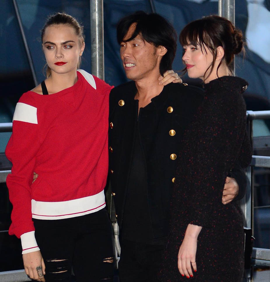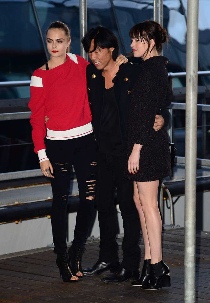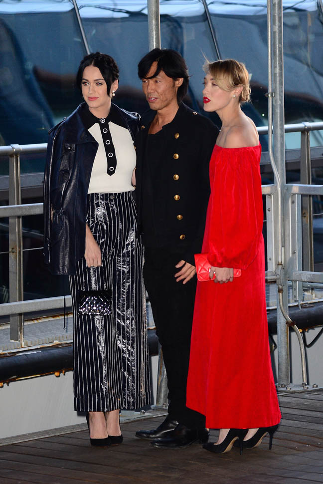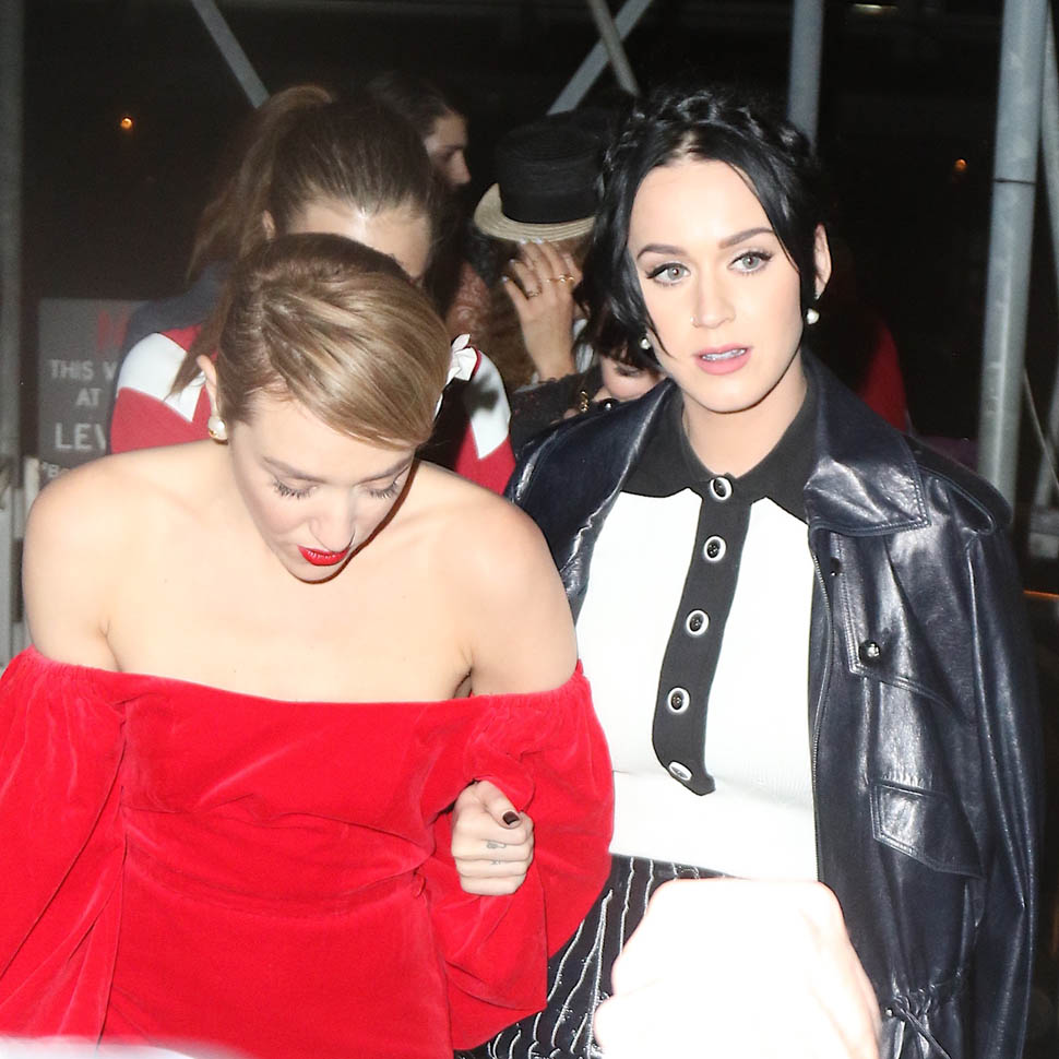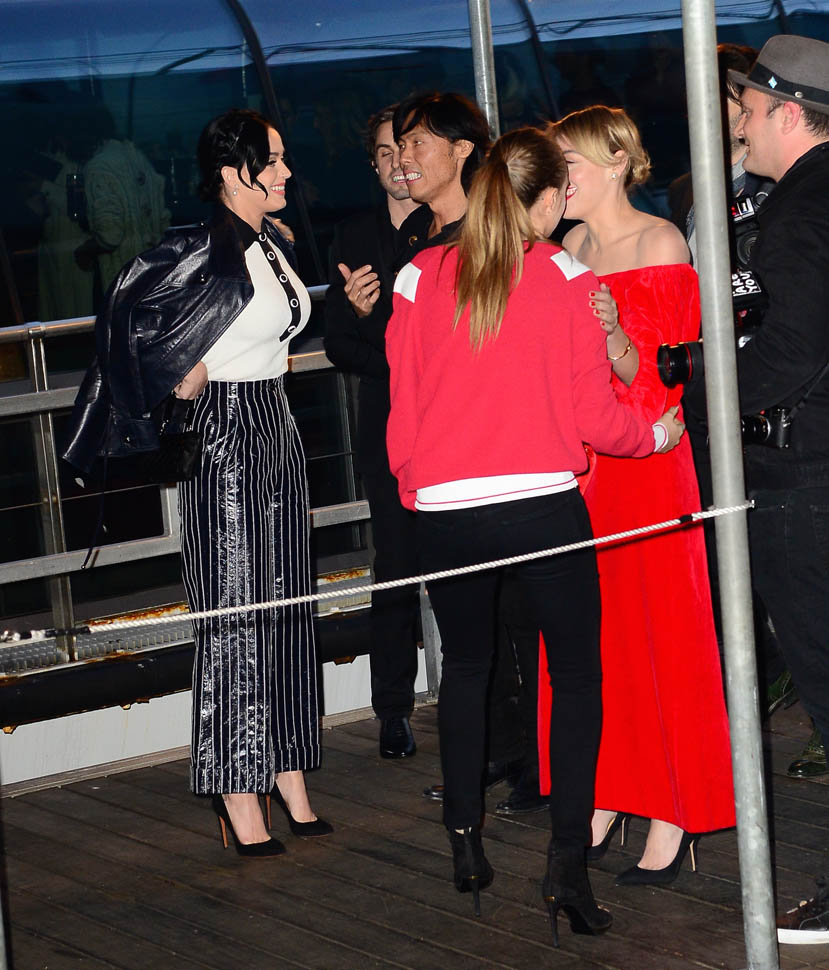 Last night she stepped out for a Chanel party with Karl Lagerfeld. It was a Hudson River cruise. Katy was with her good friend Mia Moretti. And she was hanging out with Dakota Johnson and Cara Delevingne and some people who are related to Kanye West’s wife. Including Kanye West’s wife’s mother. And that’s interesting because, as you know, some of these people also hang with Taylor Swift who’s been meticulously colonising friends, kinda like she’s England and Katy’s France. It’s the Third Hundred Years’ War. (Amazing the sh-t you retain from Grade 7 History.)