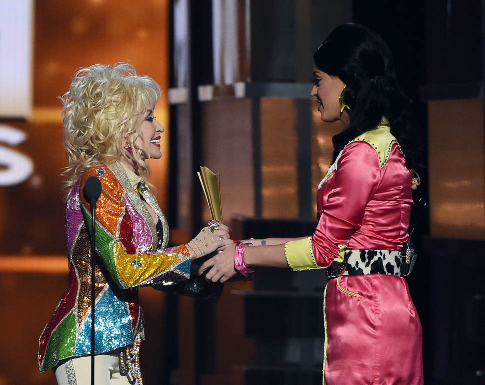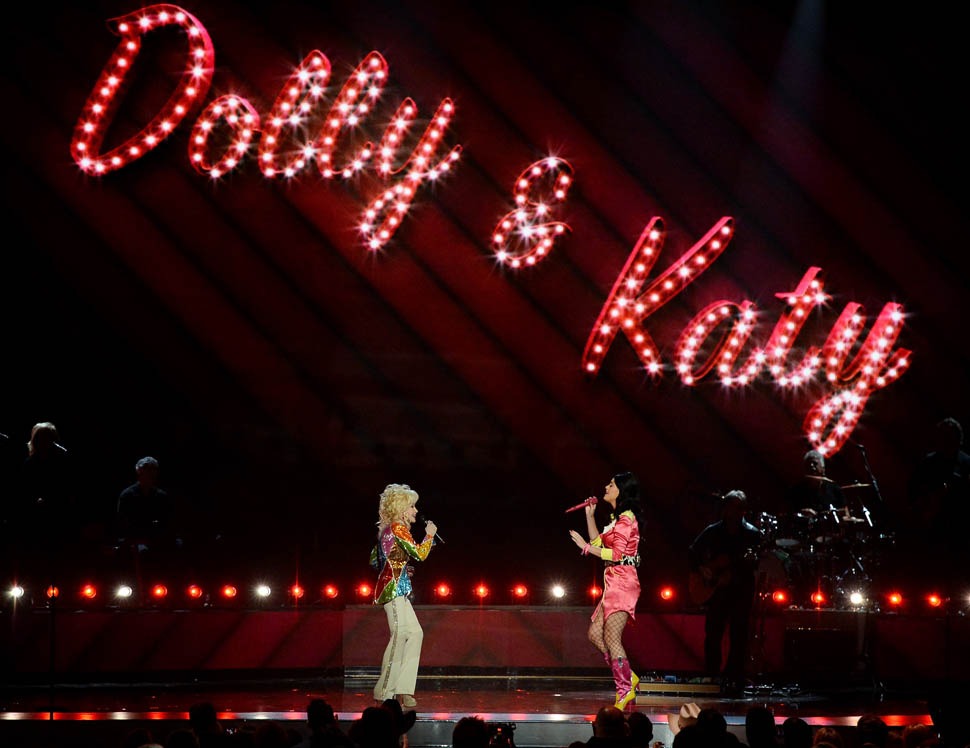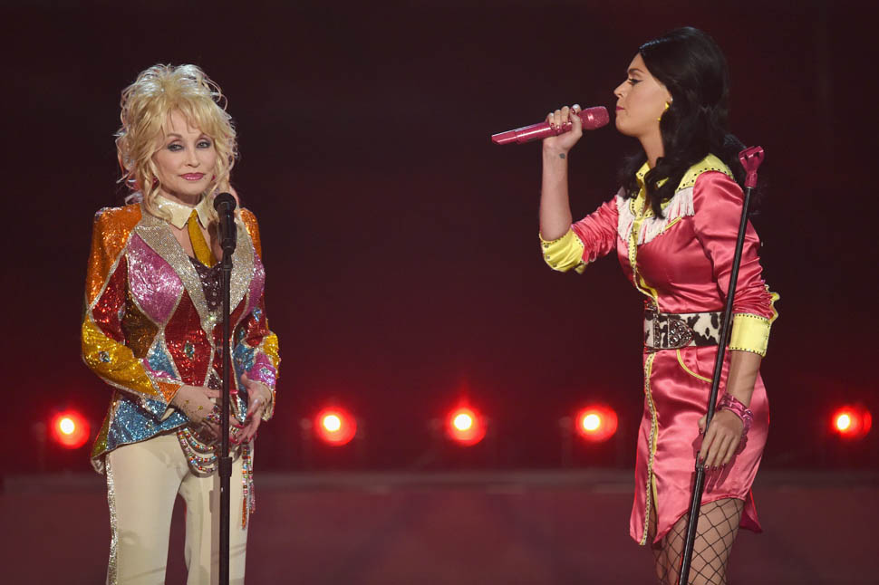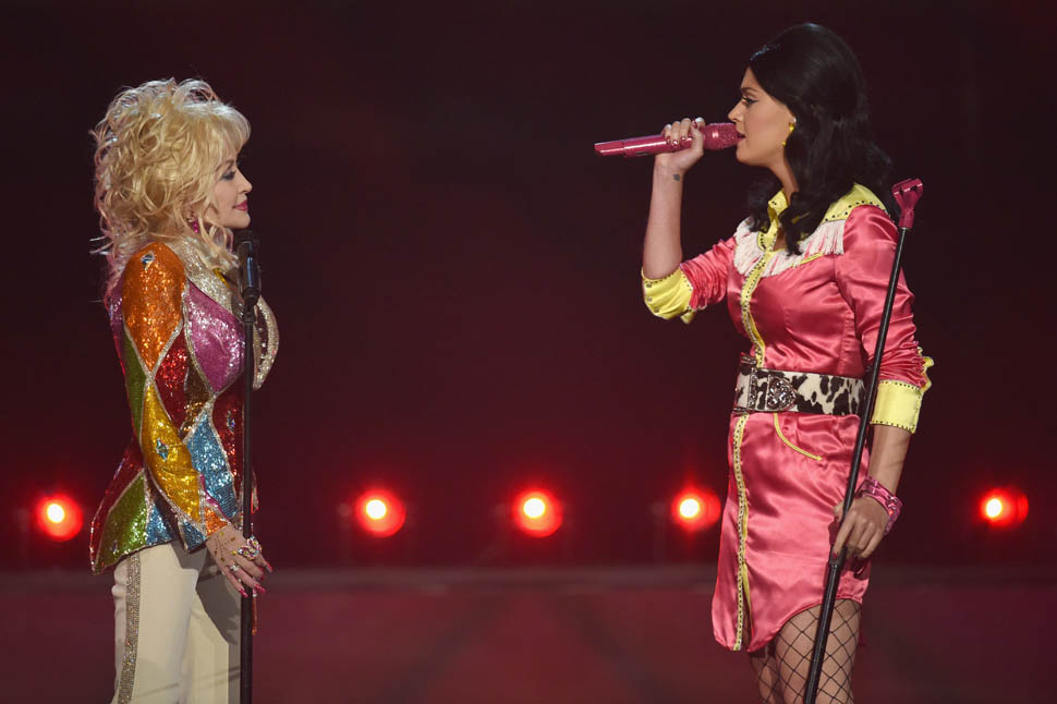 While Taylor Swift was collecting iHeartRadio Awards last night (which some would call #iFakeAwards – like the People’s Choice Awards of music?) her rival, Katy Perry, was at the Academy of Country Music Awards as Dolly Parton’s plus one which, like, can we all agree was the better ticket? If you’re presenting Dolly Parton and performing with Dolly Parton, where else could you possibly want to be?