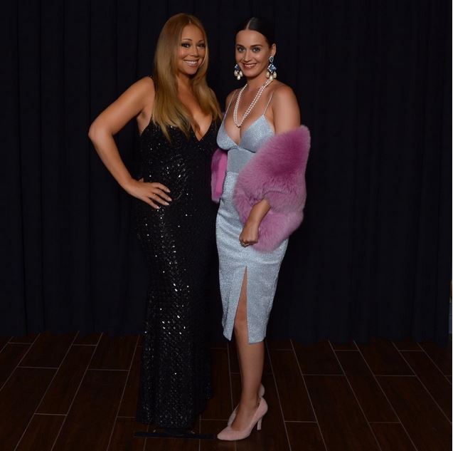 Katy Perry went to Vegas to see Mimi. Then they posed together for photos. Obviously my sweet glitter butterfly angel is the most beautiful and the most thin every day, but on this day, especially so. Because Christ Jesus what is Katy wearing?