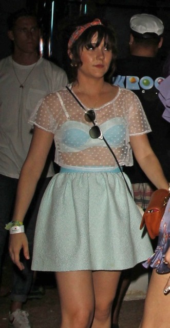 Anyway, I think they look great together. Super hot. So that’s great. Katy is in love again. Can we focus for a moment on her best friend Shannon Woodward then? I like Shannon Woodward. I hope she does well. But I feel like maybe she’s struggling after what happened with Andrew Garfield and Emma Stone. Or at least her wardrobe is. Her wardrobe is suffering a lot. Please take a look at what Shannon wore to Coachella last week (black net sleeves and silver sparkly underwear - wtf?) and this week (green bra and skirt with mesh top overlay and some kind of headgear). I just... I mean, if you’re Rihanna, or on stage, or, I dunno, in a photo shoot or something, I guess, depending on who it is, I guess you could make exceptions. But I’m not sure Shannon Woodward is any/all of these things. And I’m not sure why, at Coachella, like, old grubby shorts and a t-shirt weren’t acceptable.