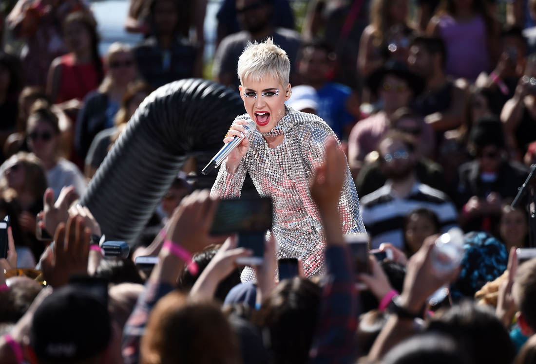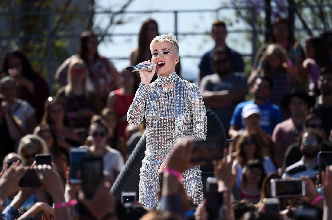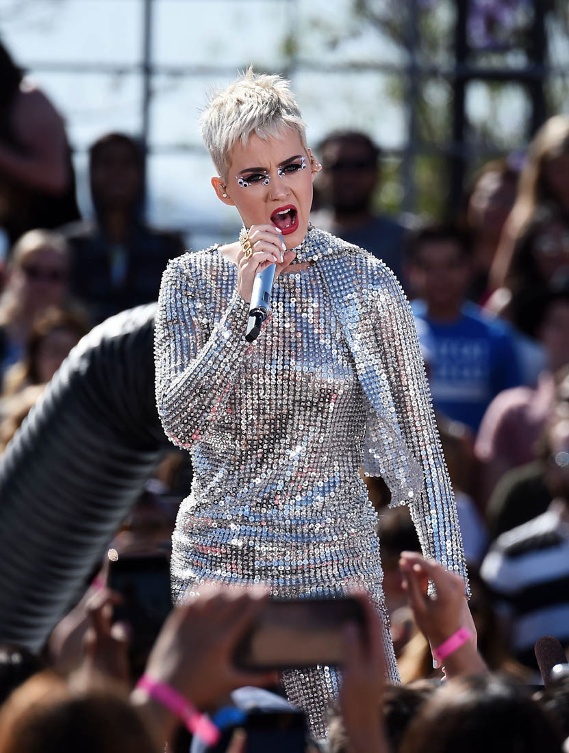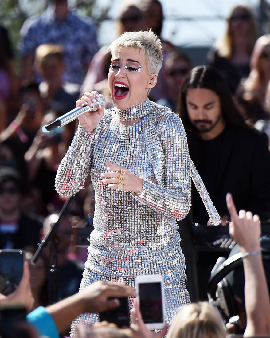 Attached- Katy Perry performing a free show in LA yesterday to promote Witness.