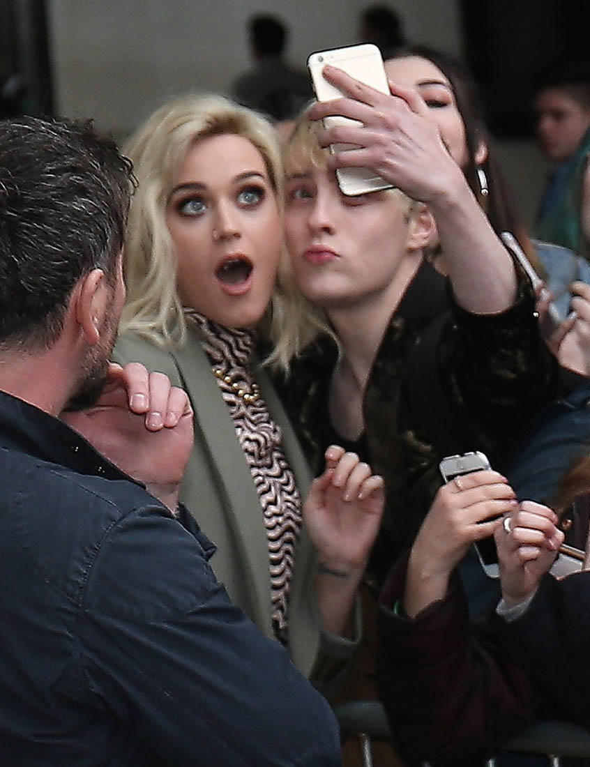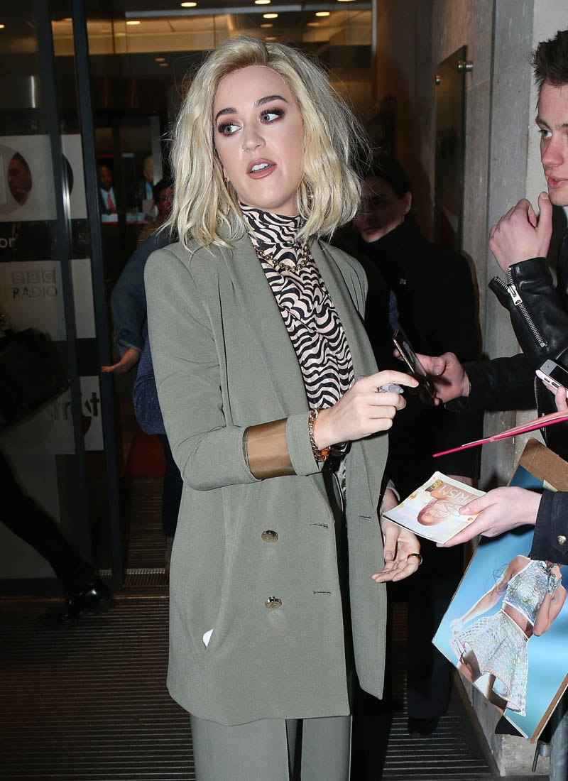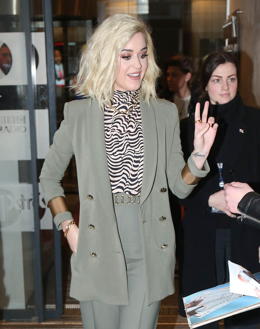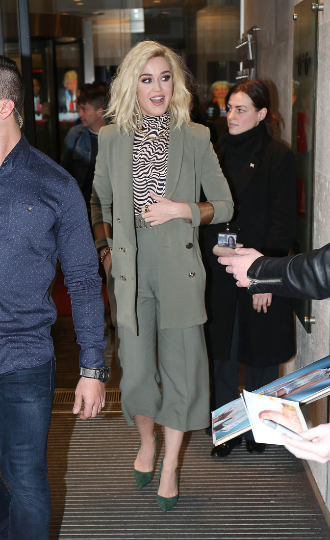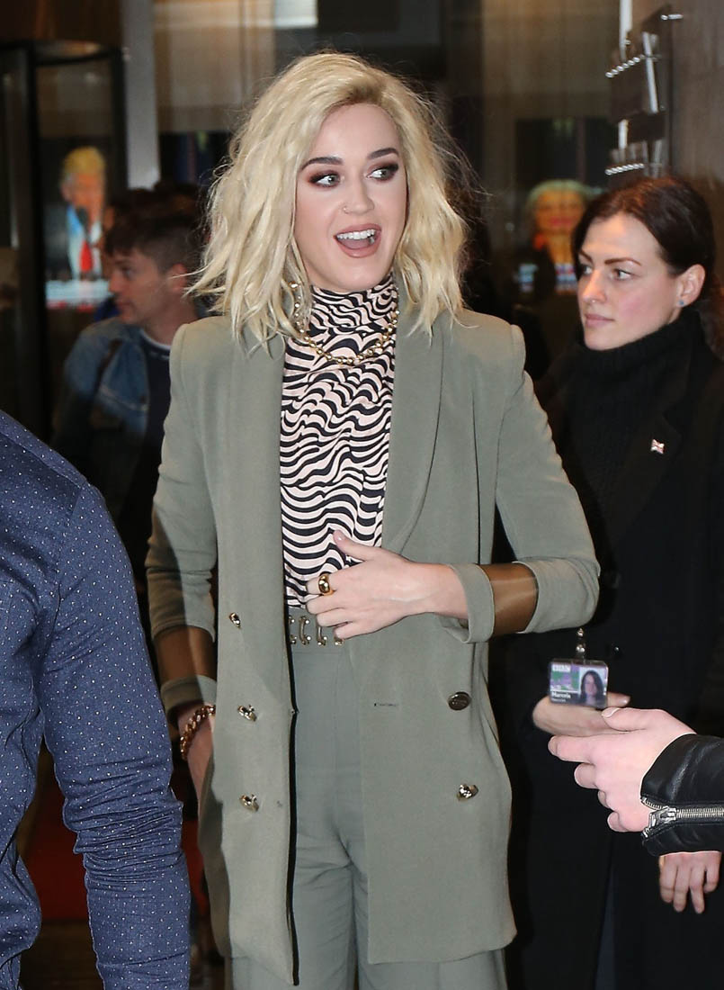 Attached - Katy Perry at BBC Radio 1 in London yesterday.
