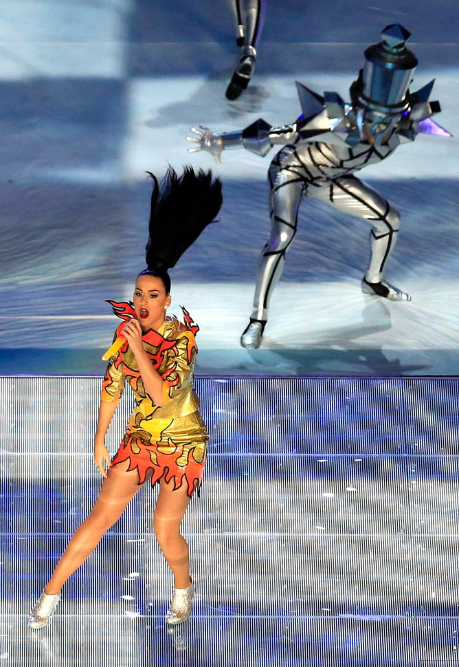 And this one comes with blow-up toys, riding a fake lion that can’t move without dudes holding broomsticks moving the legs. Because, as I wrote on Friday – click here for a refresher - Katy Perry CANNOT dance. Her Dancing Deficiency is why so much distraction is needed…which… fine… I guess. But if you can’t dance, then why can’t you sing live? No, not everyone is Beyonce. So I can accept the lip-synch if it’s accompanied by complex choreography – any choreography! (Go back and watch Missy. She was MOVING.) But I think it’s fair to say that Katy Perry’s choreography is no more complicated than a beginner dance class – in other words, we could all keep up, I promise you. But that’s the other part of the truth: Katy Perry can’t sing live either.
