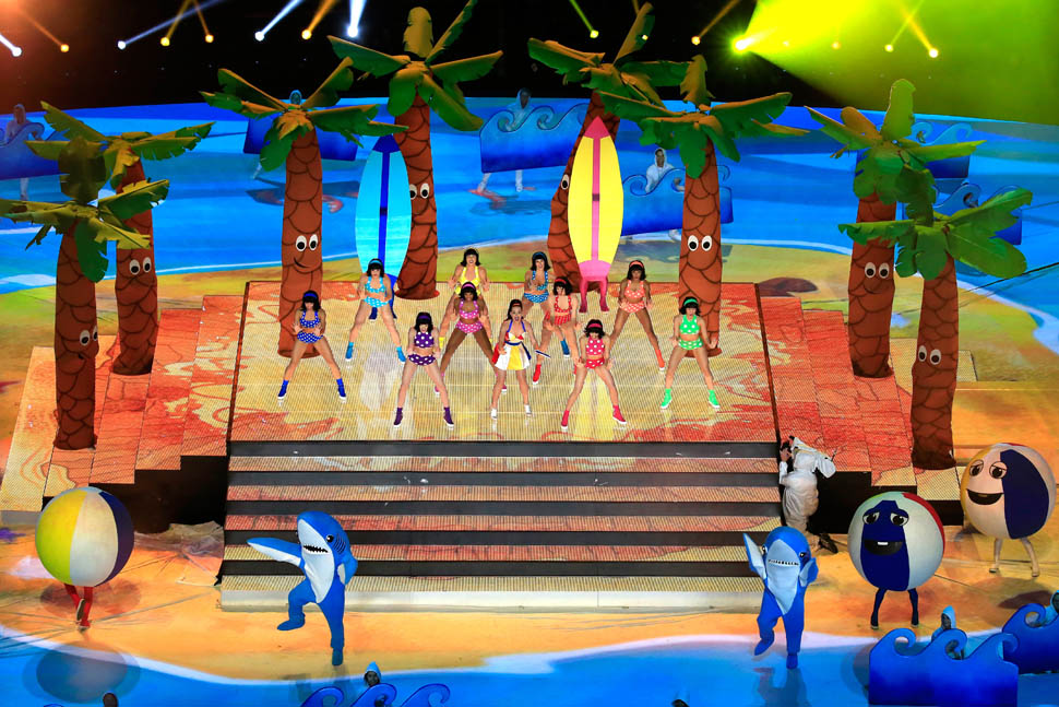 You remember that scene in Love Actually? Emma Thompson’s kids and the nativity play at their school? With blow up lobsters and other sea creatures? That’s how my friend Lorella described Katy Perry’s Super Bowl halftime show.