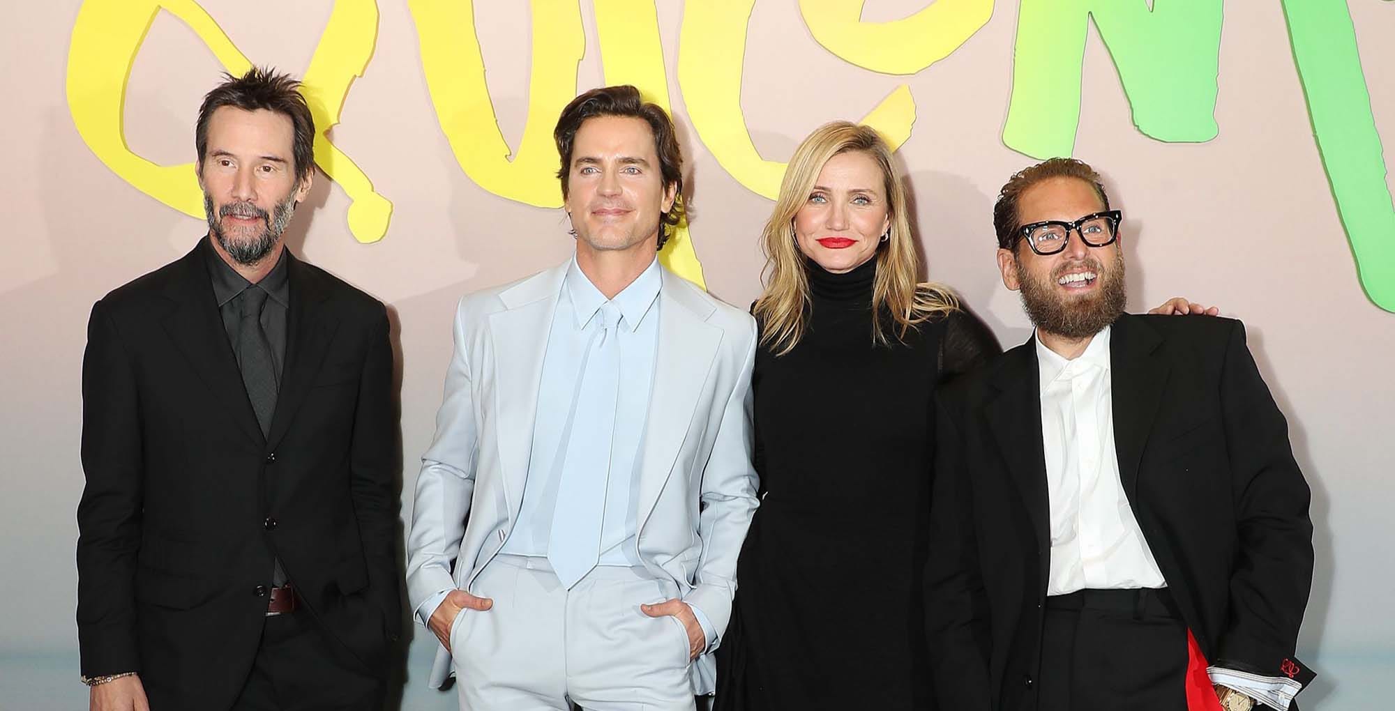Atsuko Okatsuka, Ivy Wolk, Laverne Cox, Keanu Reeves, Jonah Hill, Matt Bomer, David Spade, Susan Lucci, Cameron Diaz and Roy Wood Jr. attend the world premiere of Apple's "Outcome" at AMC Lincoln Square Theater on April 06, 2026 in New York City/Alexandra Grant and Keanu Reeves arrive at The Late Show in NYC, April 6, 2026