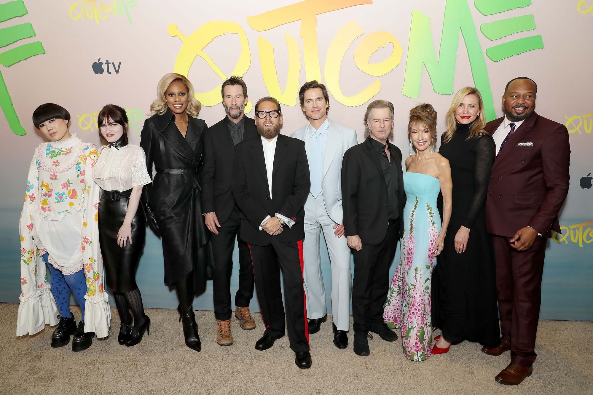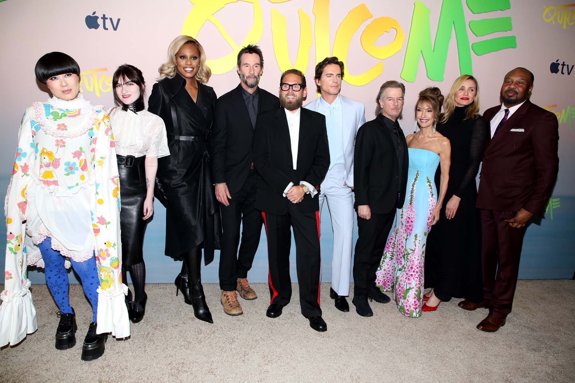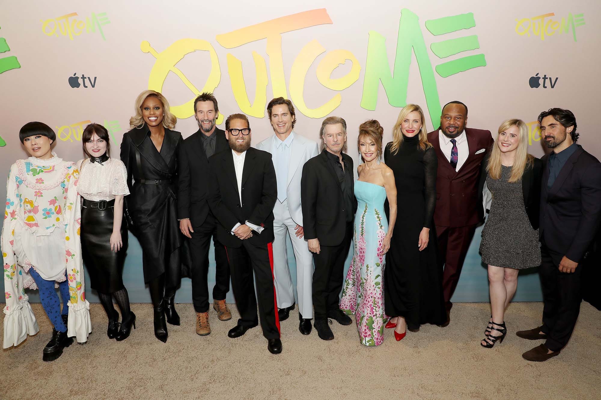 Atsuko Okatsuka, Ivy Wolk, Laverne Cox, Keanu Reeves, Jonah Hill, Matt Bomer, David Spade, Susan Lucci, Cameron Diaz, Roy Wood Jr., Alexandra Grant attend the world premiere of Apple's "Outcome" at AMC Lincoln Square Theater on April 06, 2026 in New York City
