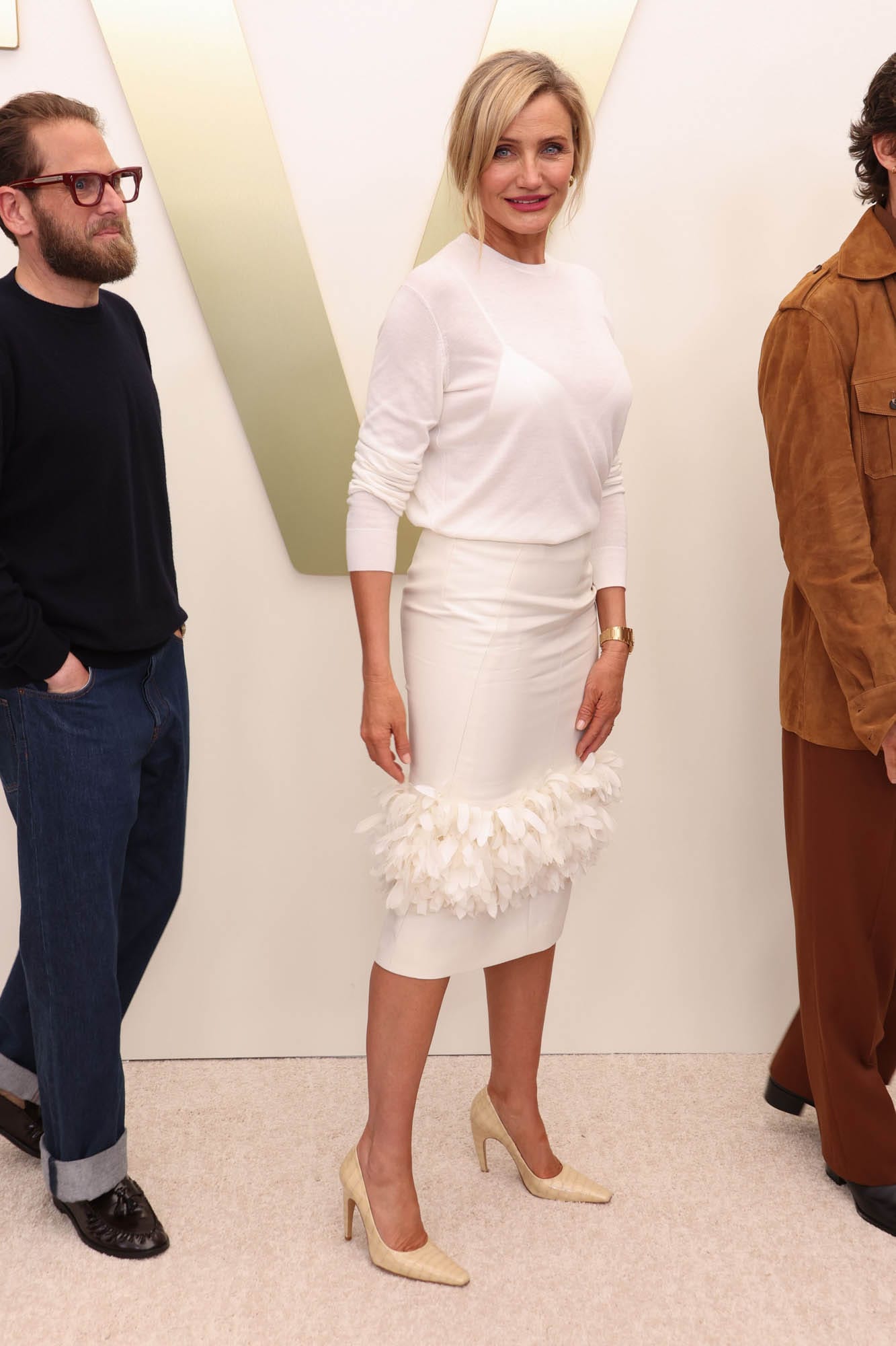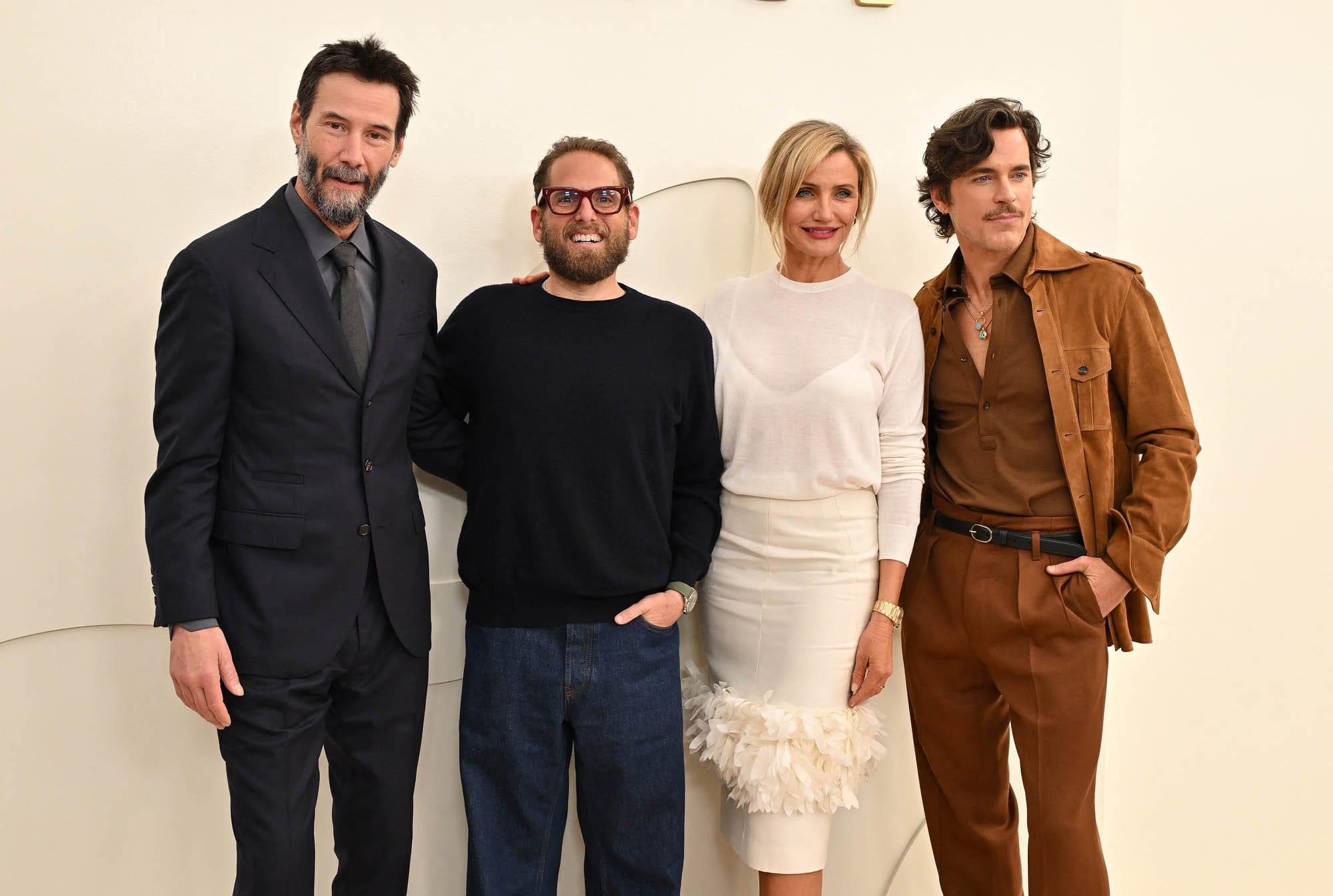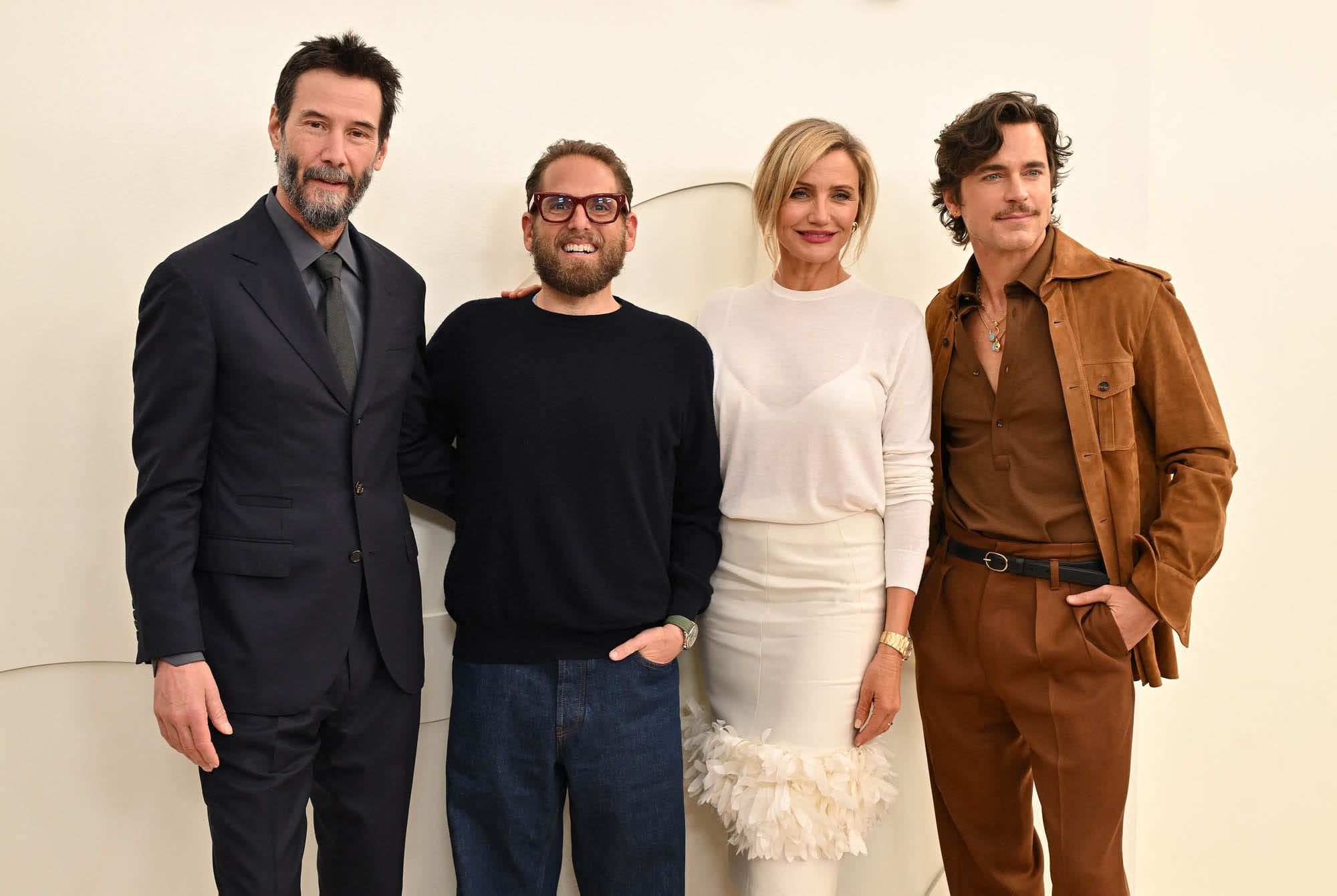 Keanu Reeves, Jonah Hill, Cameron Diaz and Matt Bomer at the Apple TV Press Day held at Barker Hangar on February 03, 2026 in Los Angeles, California