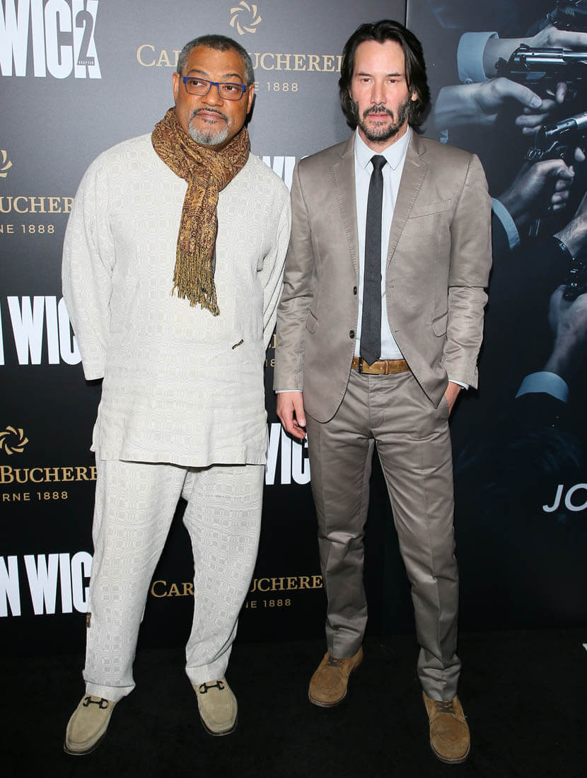 John Wick: Chapter 2 had its premiere last night in Los Angeles and it reunited Keanu Reeves and Laurence Fishburne on the red carpet. Reeves is, of course, John Wick, and Fishburne is playing a new character named “The Bowery King”. The obligatory reference here is “Neo and Morpheus together again!” but I really believe, in the long run, Reeves is remembered more for John Wick than Neo. I’ve said it before and I’m doubling down. John Wick is an actual person with a memorable personality, and he’s not in Reeves’ typical “Whoa” style, either. I quote John Wick way more than Neo. So the question is, will The Bowery King be indelible like John Wick? Or will Morpheus remain Fishburne’s #2 character? (#1 is obviously Cowboy Curtis.)