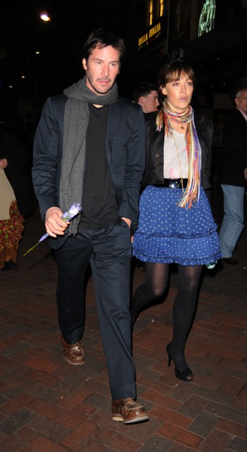 Here’s Keanu Reeves at the London Film Festival premiere of ‘Anvil’. Let it be noted that he doesn’t really age. And never takes a bad photo. He’s middle-aged, but there’s no middle-aged bloat. Remember when Matthew Perry looked like a balloon came out of his neck? Keanu doesn’t have that. Keanu has never created a scandal. But he left the Ivy last night with an unidentified woman. And this morning, as Lainey and I battled over electrical outlets and debated whether or not you can wear sneakers into Chanel in Paris (verdict: nope) we discussed his ‘growing friendship’ with Trinny Woodall.