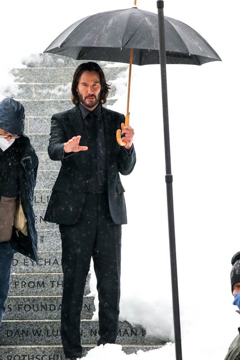It was Lunar New Year this week, and the tiger is already a LOT. This week has been one million years long and the snow gods sh-t on a lot of us, which is exhausting on top of everything else, so here is some Keanu to carry you into the weekend with nothing but good vibes. He’s filming John Wick 4 in the snow in New York City. I love that John Wick is as impervious to snow as he is to desert sand. I just really love the whole franchise’s commitment to their aesthetic, like John Wick will never wear ANYTHING but his black suits and dress shoes, you can count on it, just like you can count on Keanu to give you a thumb’s up in the snow.